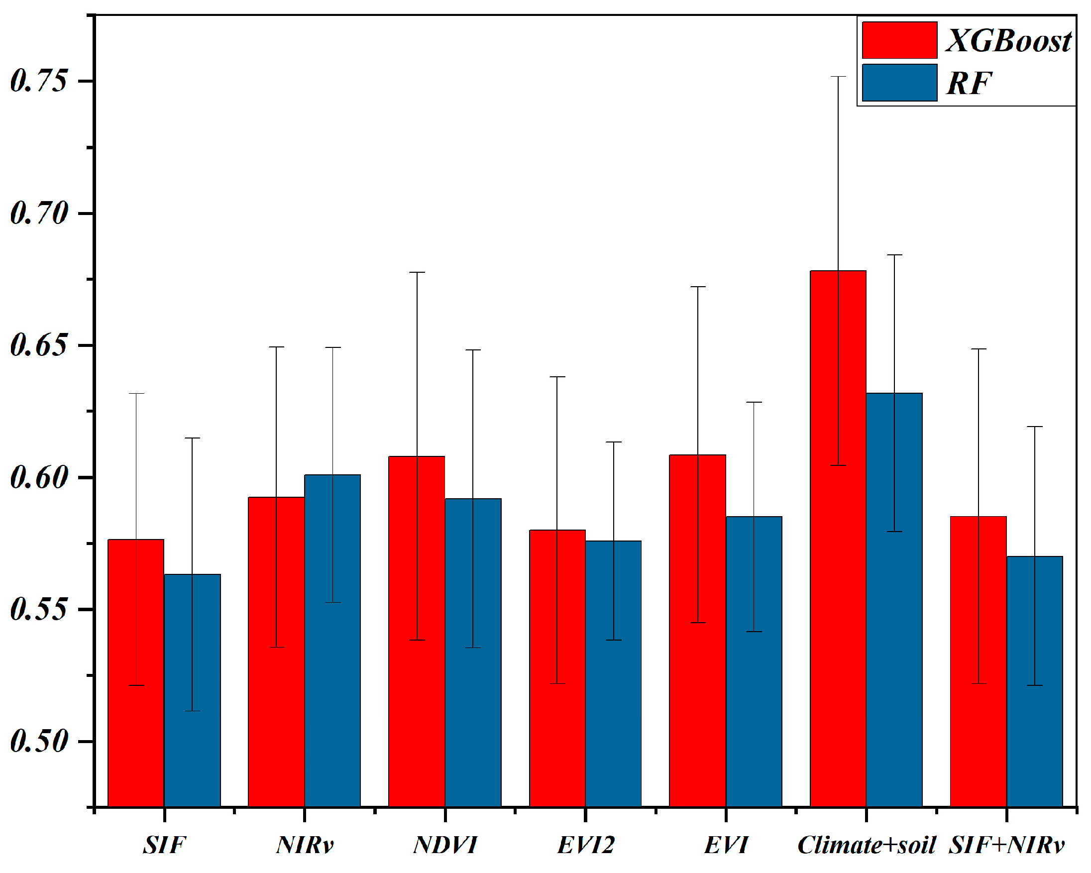 - Zheng, M.; Hu, H.; Niu, Y.; Shen, Q.; Jia, F.; Geng, X. Modeling of winter wheat yield prediction based on solar-induced chlorophyll fluorescence by machine learning methods. Eur. J. Remote Sens. 2025, 58, 2455940. [Google Scholar] [CrossRef]