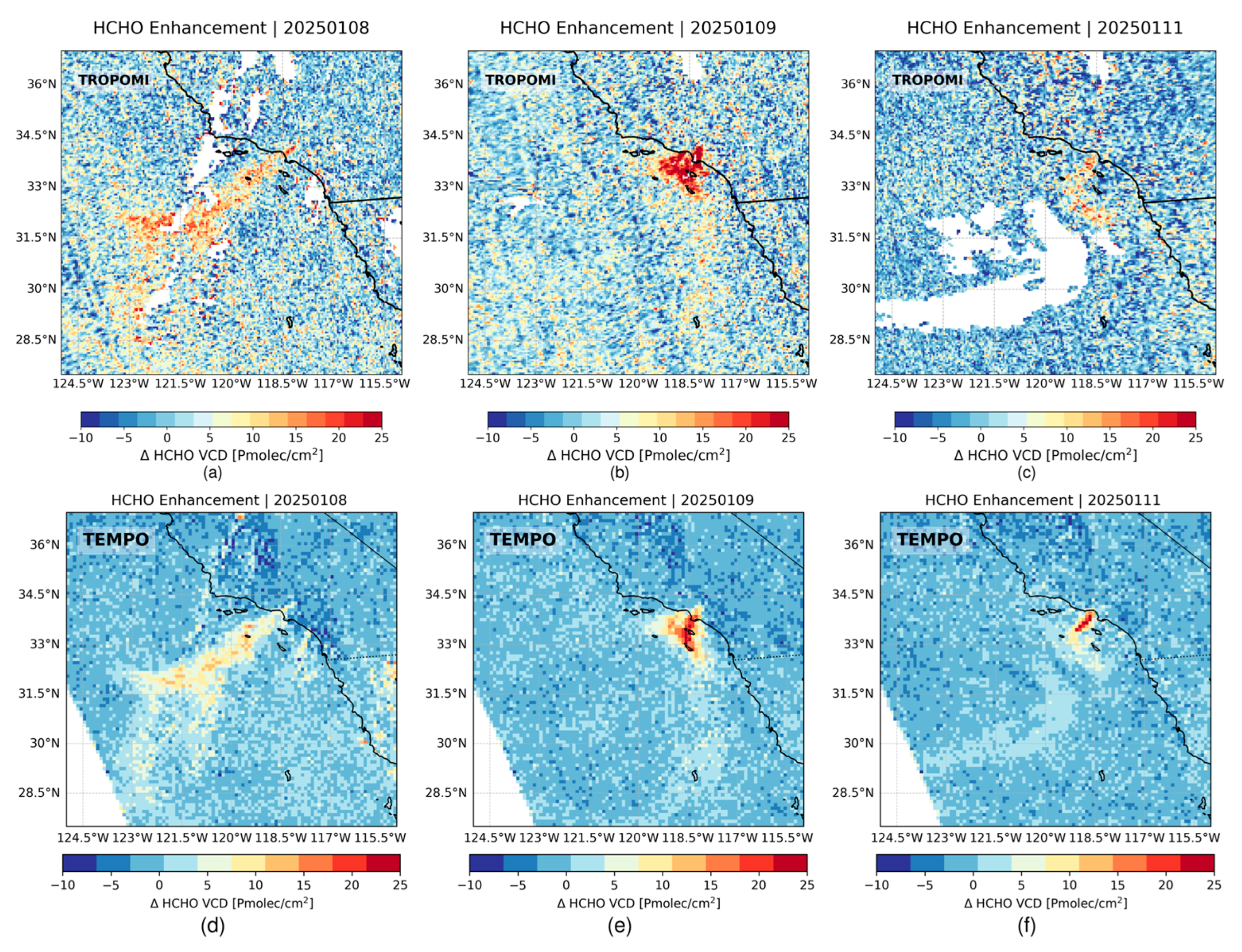 - De Smedt, I.; Theys, N.; Vlietinck, J.; Yu, H.; Danckaert, T.; Lerot, C.; van Roozendael, M. S5P/TROPOMI HCHO ATBD, S5P- BIRA-L2-400F-ATBD, CI-400F-ATBD, Issue: 2.7.0, 2024-10-01, Status: Update for the Version 2.7.0 of the Operational Processor, S5P Documents. Available online: https://sentiwiki.copernicus.eu/__attachments/1673595/S5P-BIRA-L2-400F-ATBD%20-%20Sentinel-5P%20TROPOMI%20HCHO%20ATBD%202024%20-%202.7.0.pdf?inst-v=19224347-b78a-4e98-8878-0bb2ef5b4589 (accessed on 4 November 2025).