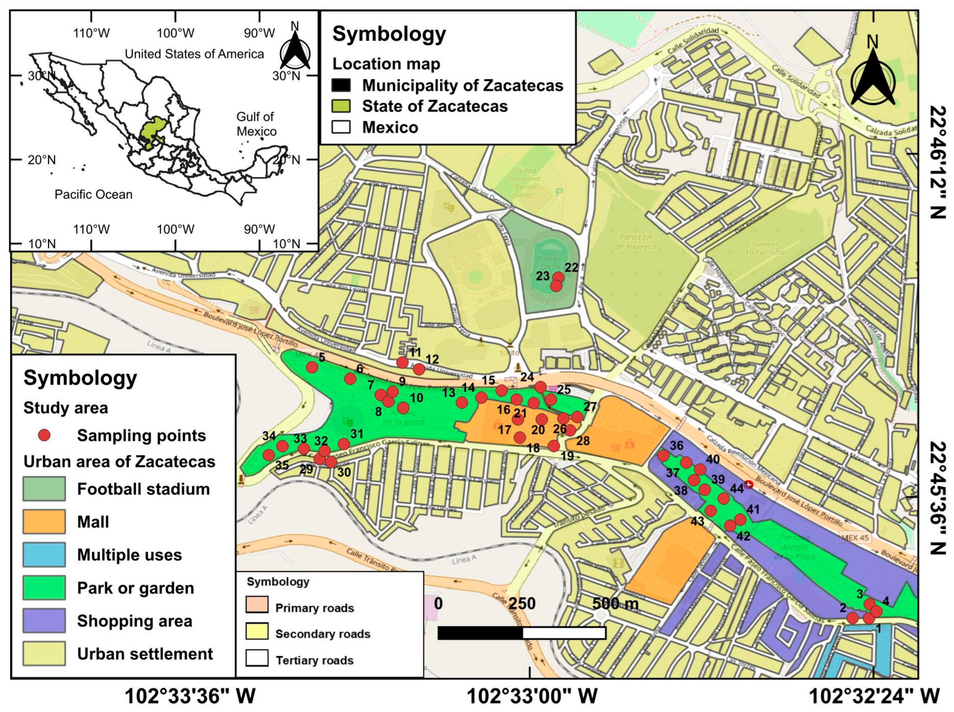 - Mireles, F.; Davila, J.I.; Pinedo, J.L.; Reyes, E.; Speakman, R.J.; Glascock, M.D. Assessing urban soil pollution in the cities of Zacatecas and Guadalupe, Mexico by instrumental neutron activation analysis. Microchem. J. 2012, 103, 158–164. [Google Scholar] [CrossRef]