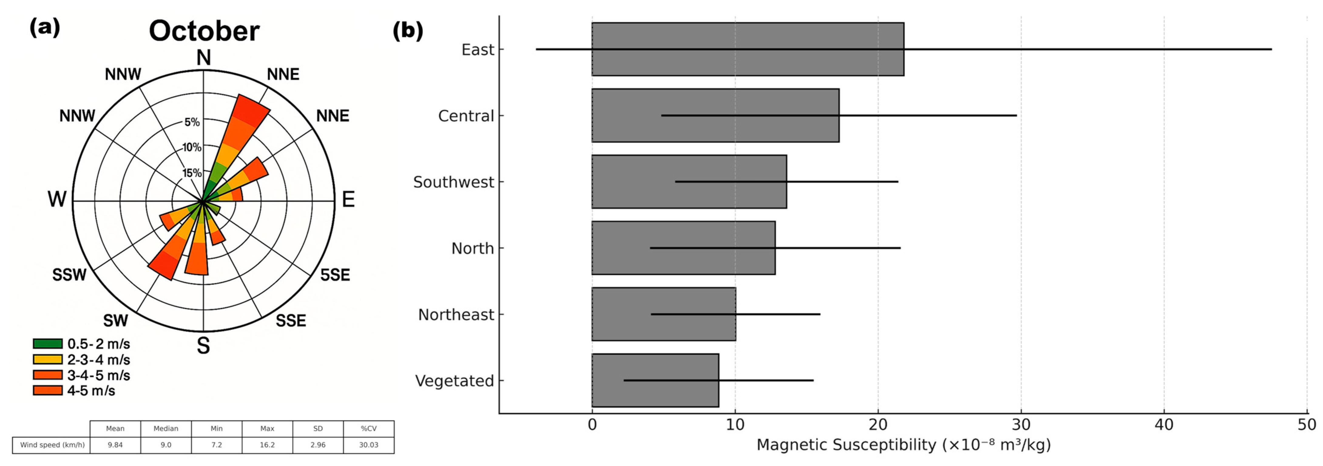 - Marié, D.C.; Chaparro, M.A.; Gogorza, C.S.; Navas, A.; Sinito, A.M. Vehicle-derived emissions and pollution on the road Autovia 2 investigated by rock-magnetic parameters: A case study from Argentina. Stud. Geophys. Geod. 2010, 54, 135–152. [Google Scholar] [CrossRef]