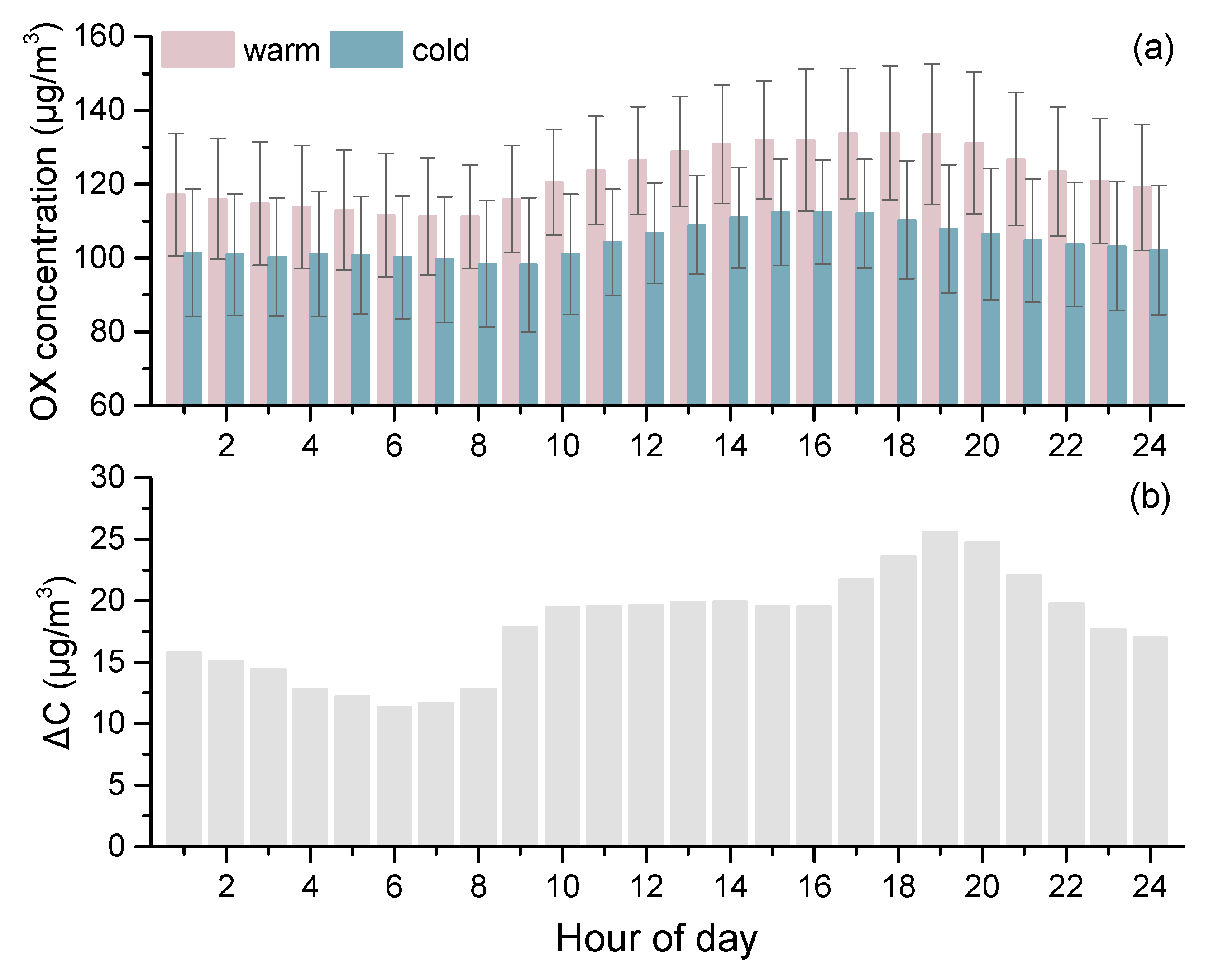 - Pancholi, P.; Kumar, A.; Bikundia, D.S.; Chourasiya, S. An observation of seasonal and diurnal behavior of O3–NOx relationships and local/regional oxidant (OX = O3 + NO2) levels at a semi-arid urban site of western India. Sustain. Environ. Res. 2018, 28, 79–89. [Google Scholar] [CrossRef]