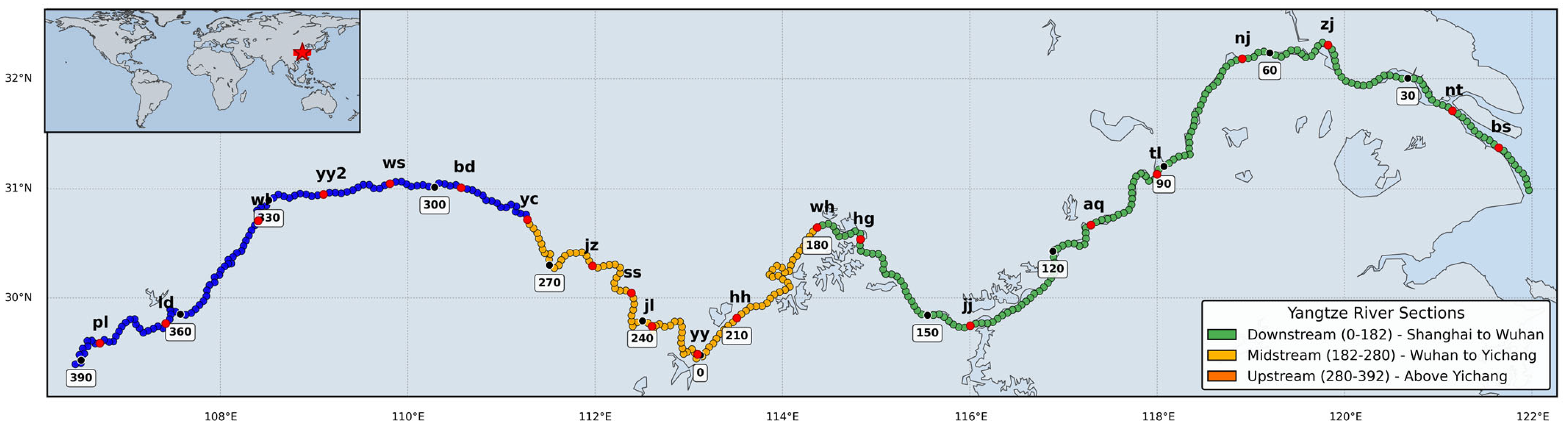 - Peng, W.; Shuai, C.F.; Xin, X. Yangtze River: China’s golden waterway. In Proceedings of the Institution of Civil Engineers-Civil Engineering; Thomas Telford Ltd.: London, UK, 2010; Volume 163, pp. 3–47. [Google Scholar]