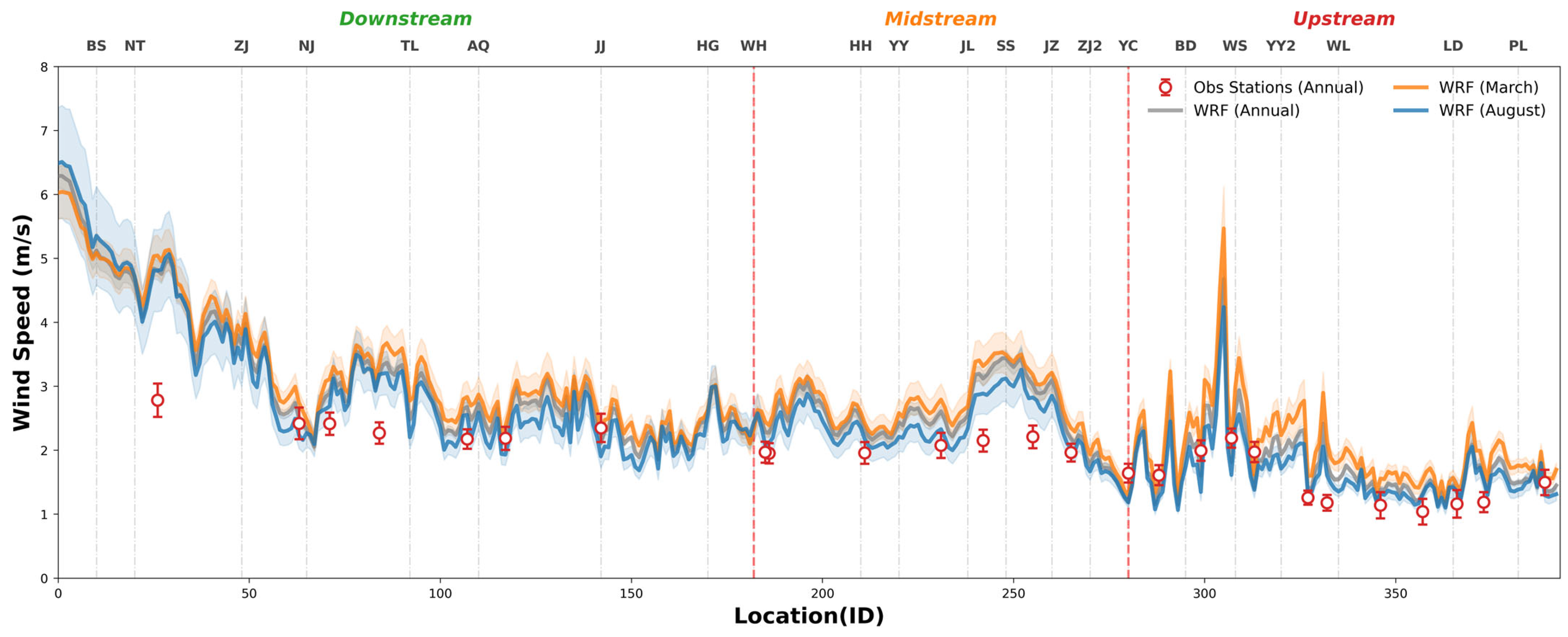 - Xu, J.; Wu, J.; Xing, Y.; Yang, D.; Jiao, Y.; Shang, M.; Bai, L. Error Analysis of Wind Speed of High Spatiotemporal Resolution Surface Variable Reanalysis Products in China. Clim. Change Res. Lett. 2025, 14, 831–841. (In Chinese) [Google Scholar] [CrossRef]