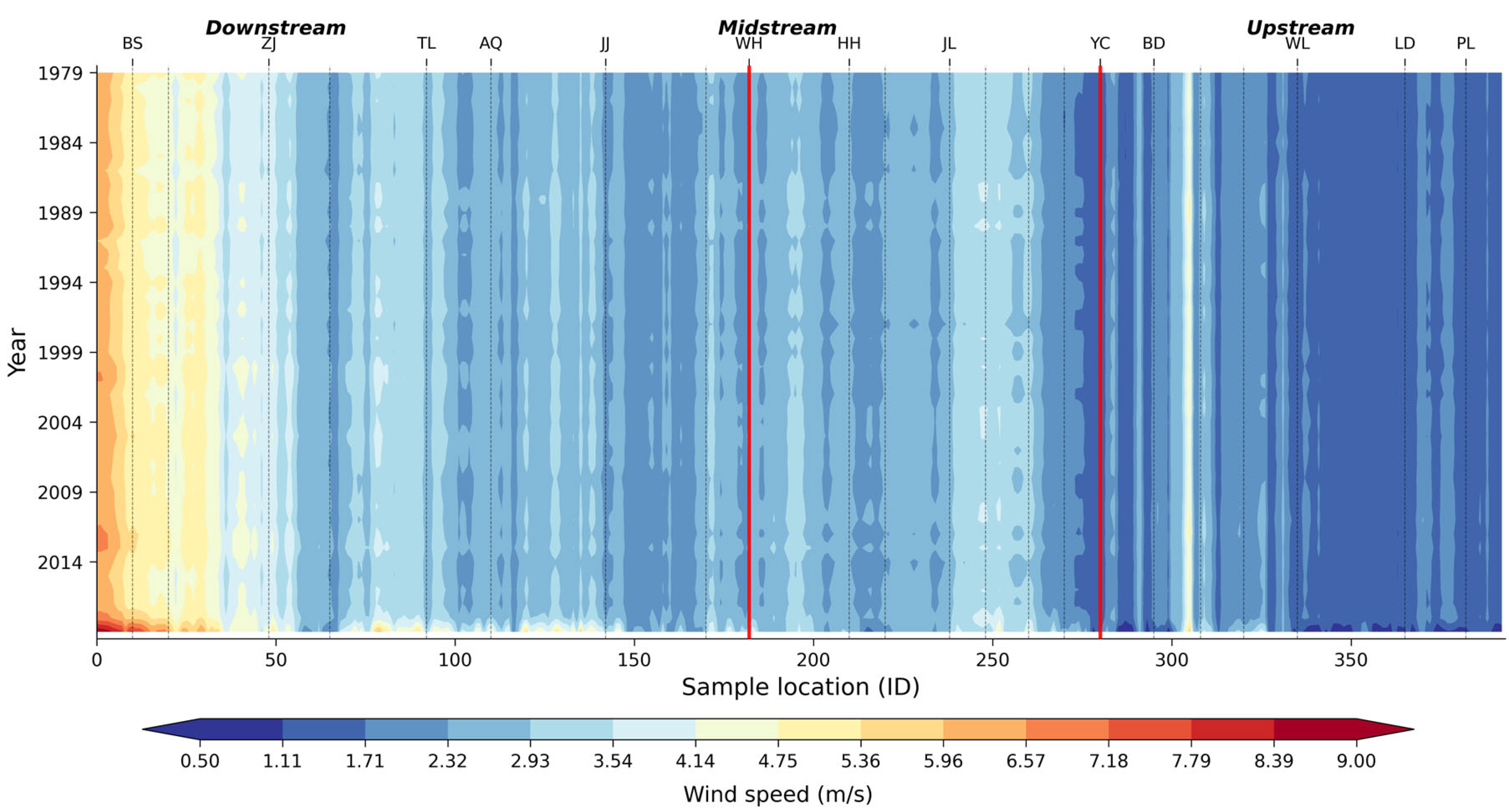 APA StyleBai, L., Shang, M., Shi, C., Bian, Y., Liu, L., Zhang, J., & Li, Q. (2026). Spatiotemporal Wind Speed Changes Along the Yangtze River Waterway (1979–2018). Atmosphere, 17(1), 81. https://doi.org/10.3390/atmos17010081