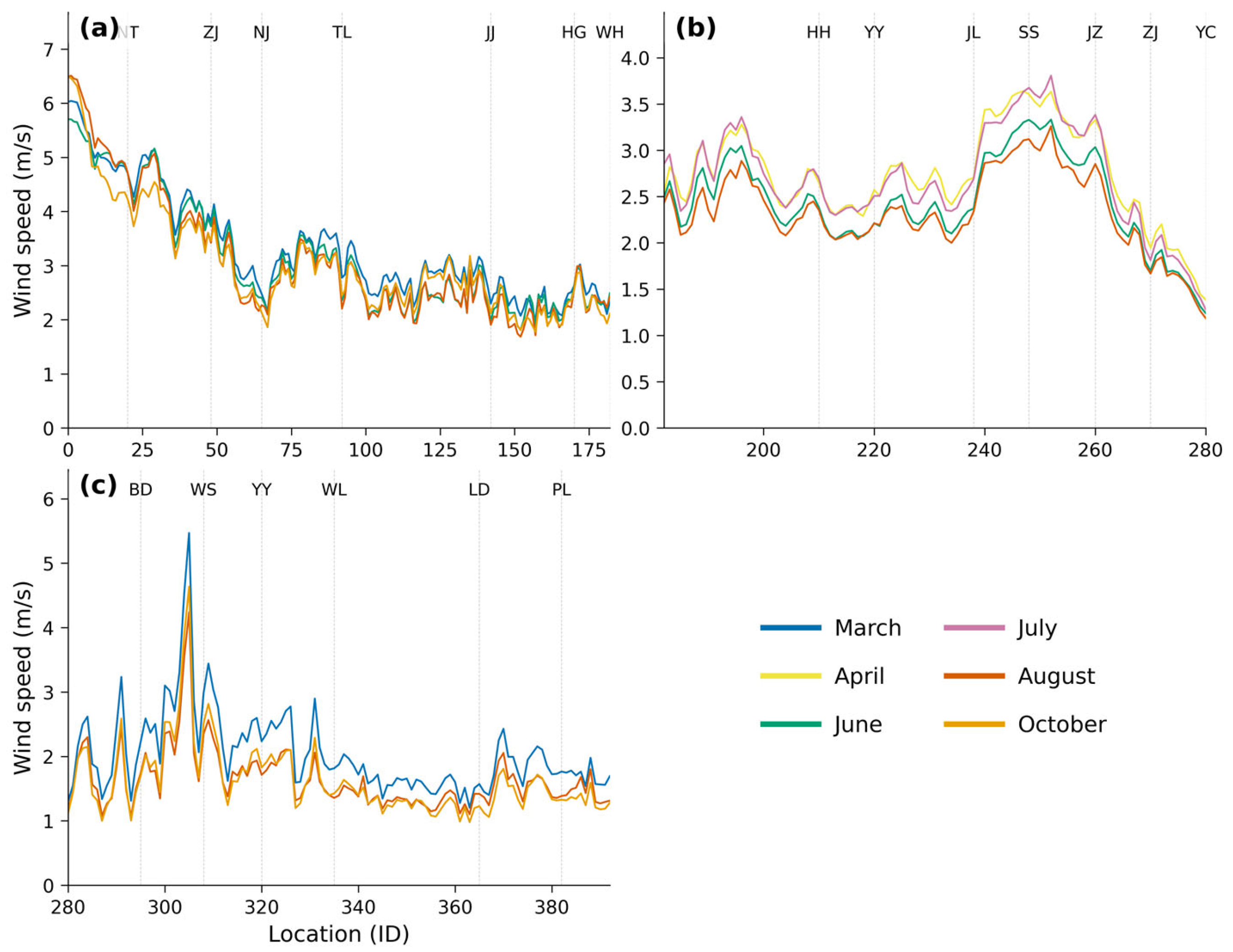 3.2.1. Climatological Monthly Wind Speed
