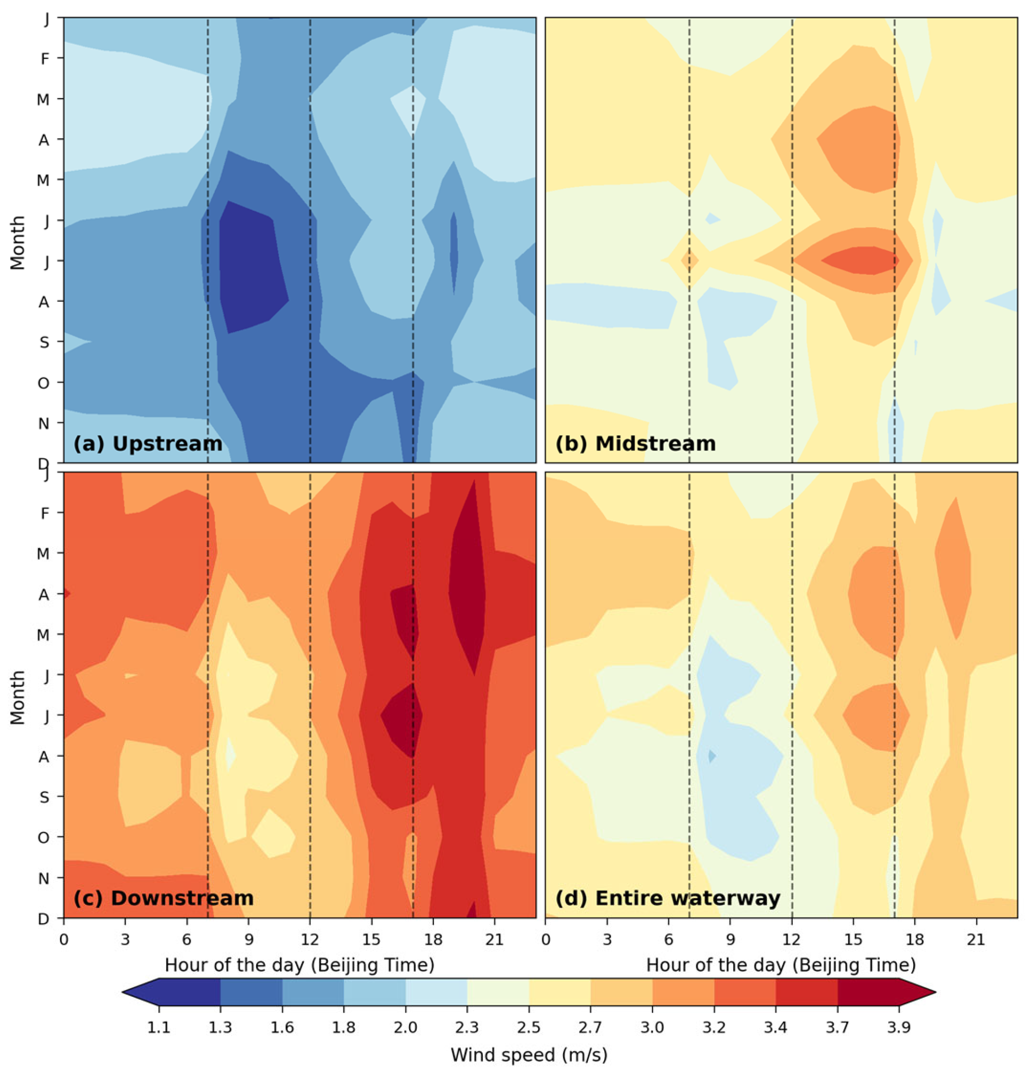 3.3.2. Diurnal and Seasonal Wind Speed Cycles
