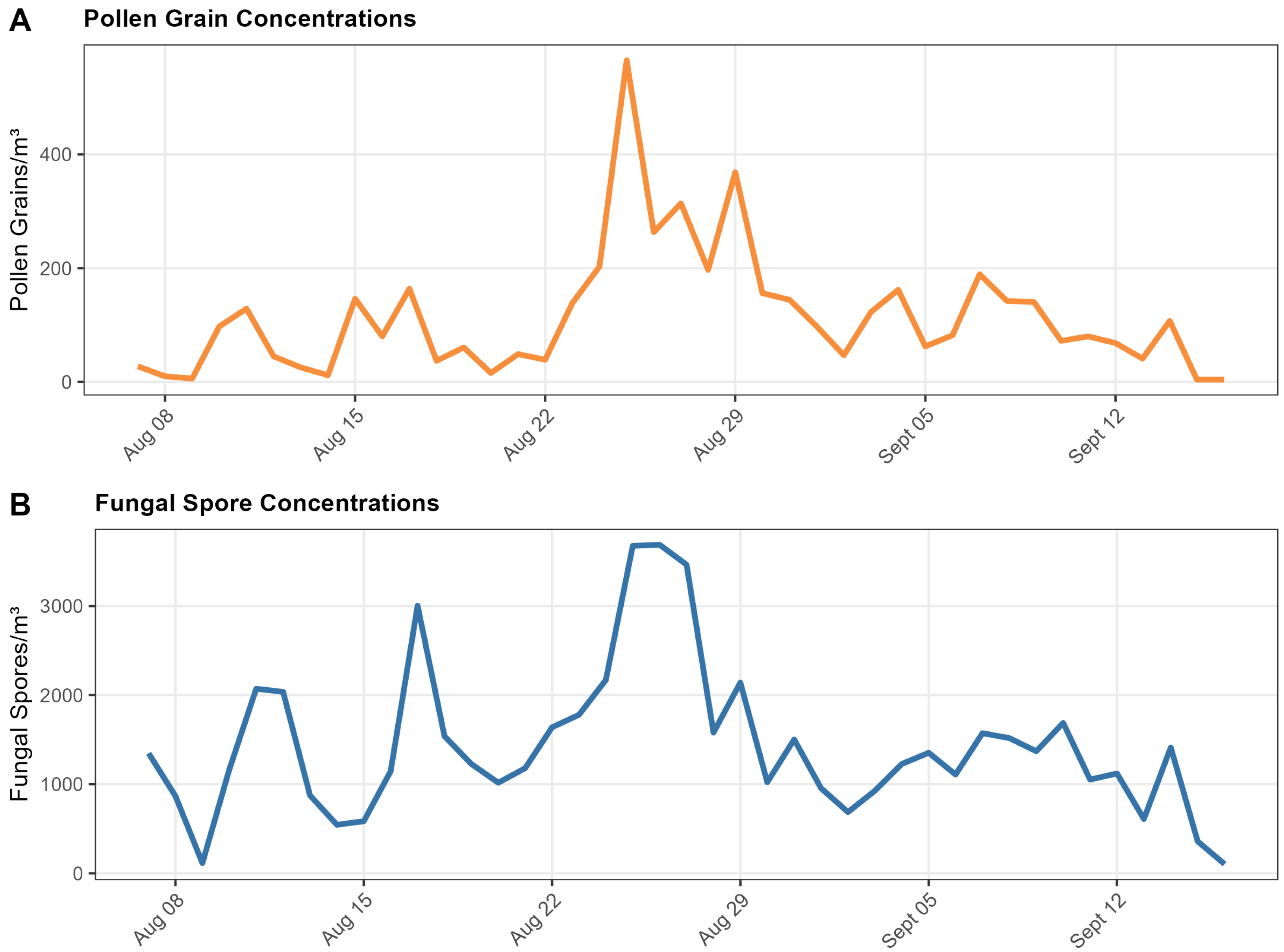 - Martínez-Bracero, M.; Markey, E.; Clancy, J.H.; Sodeau, J.; O’Connor, D.J. First Long-Time Airborne Fungal Spores Study in Dublin, Ireland (1978–1980). Atmosphere 2022, 13, 313. [Google Scholar] [CrossRef]