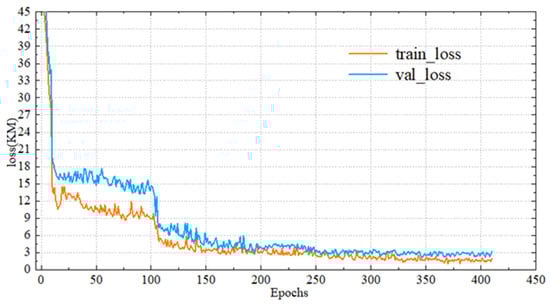 The error change curve during training is shown in Figure 3. It can be seen that with the increase in the number of training epochs, both the validation set error and the training set error show a gradual downward trend, eventually stabilizing at a flat level, indicating that the model training is effective and converged stably.