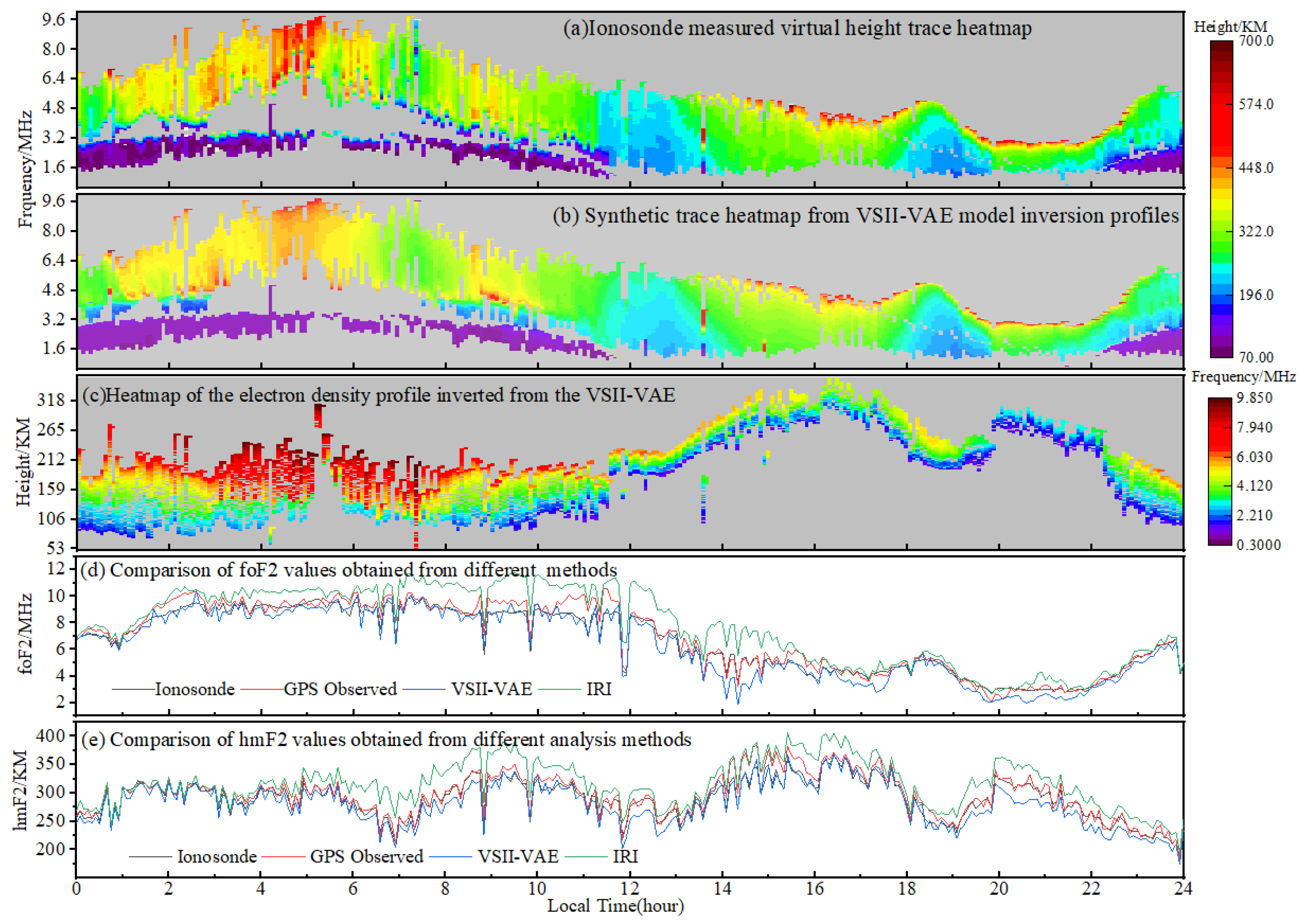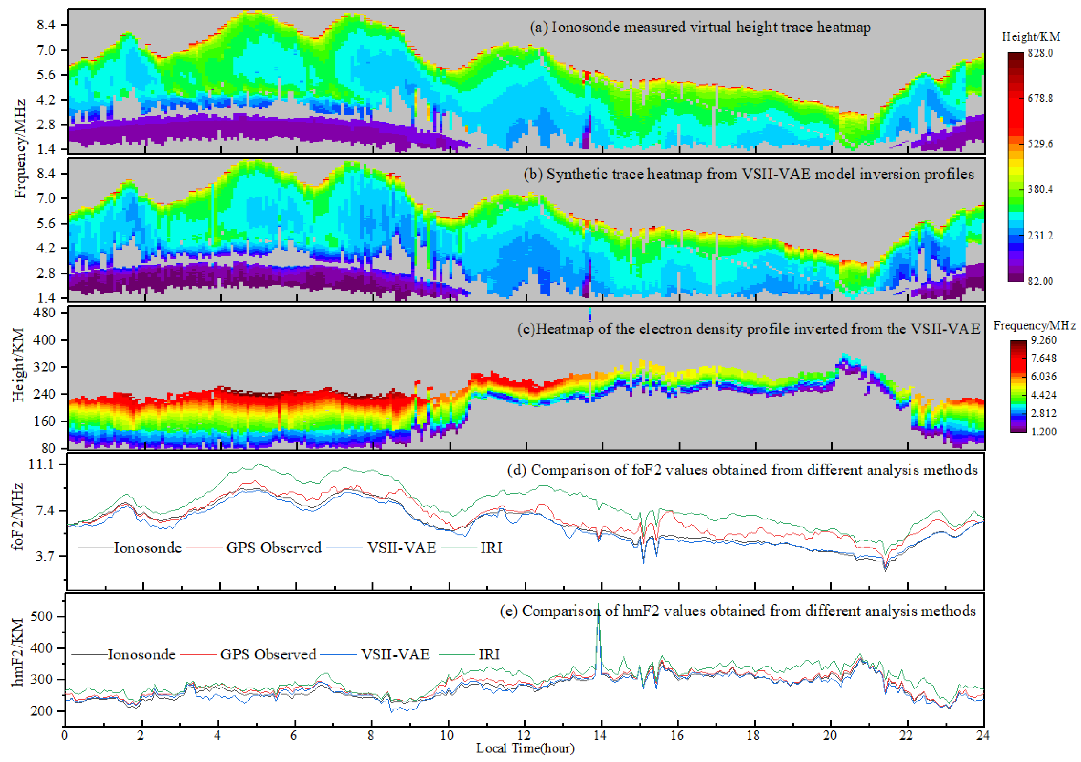 Figure 11, the reconstructed ionogram traces from the inverted profiles of the VSII-VAE can fully reconstruct the measured ionogram traces between 12:00 and 22:00, demonstrating a high degree of consistency.