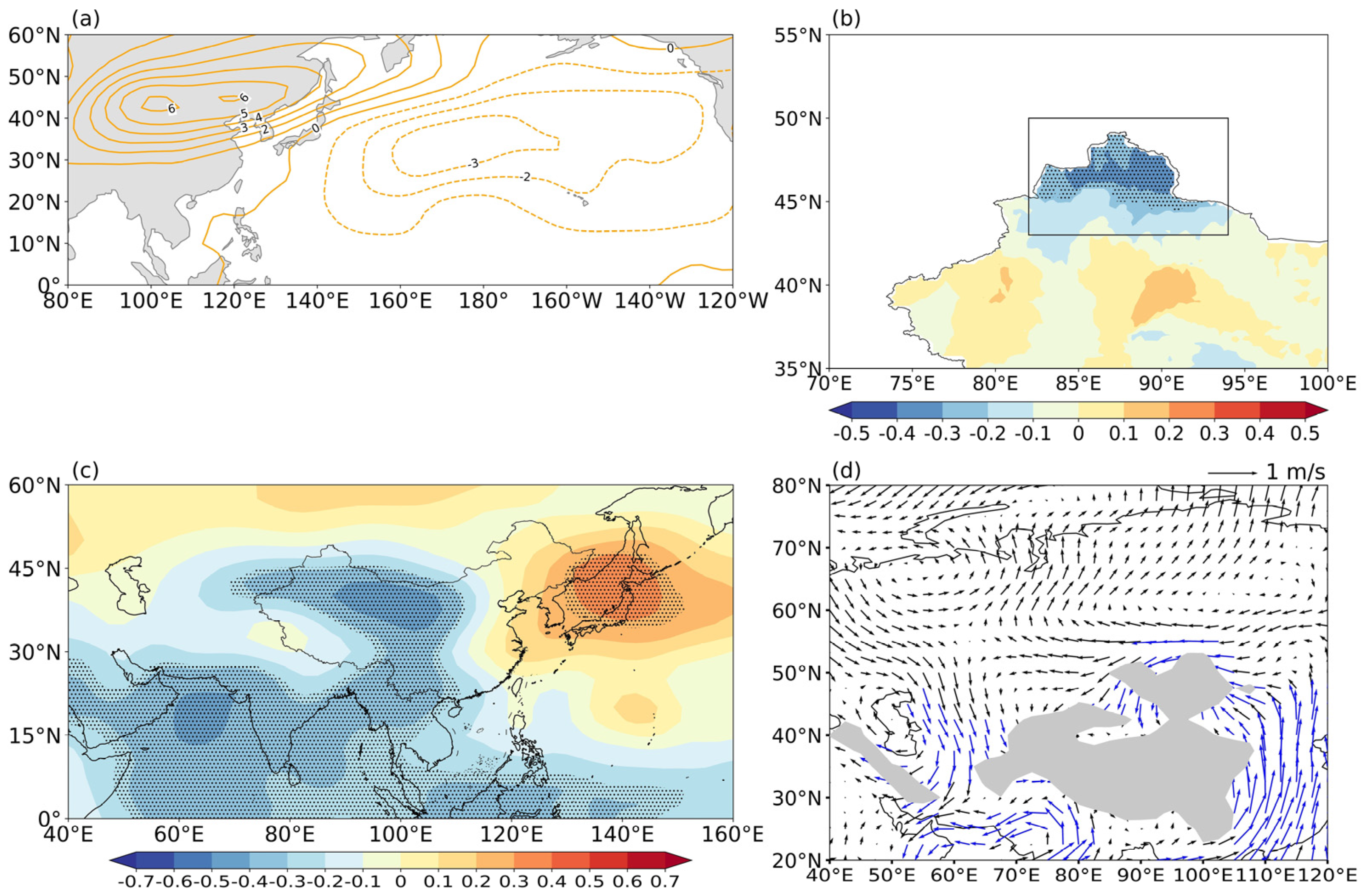 - Zhu, Y.; Hua, W. Influence of August Asian–Pacific Oscillation on September Precipitation in Northern Xinjiang. Atmosphere 2025, 16, 1042. [Google Scholar] [CrossRef]