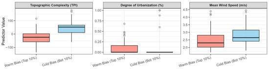 - Error analysis demonstrated that systematic biases are confined to specific terrain-meteorology combinations and are physically interpretable. TPI clearly separated bias directions, and spatial autocorrelation analysis confirmed spatially random error distribution with 98% of station–season combinations showing no significant clustering.