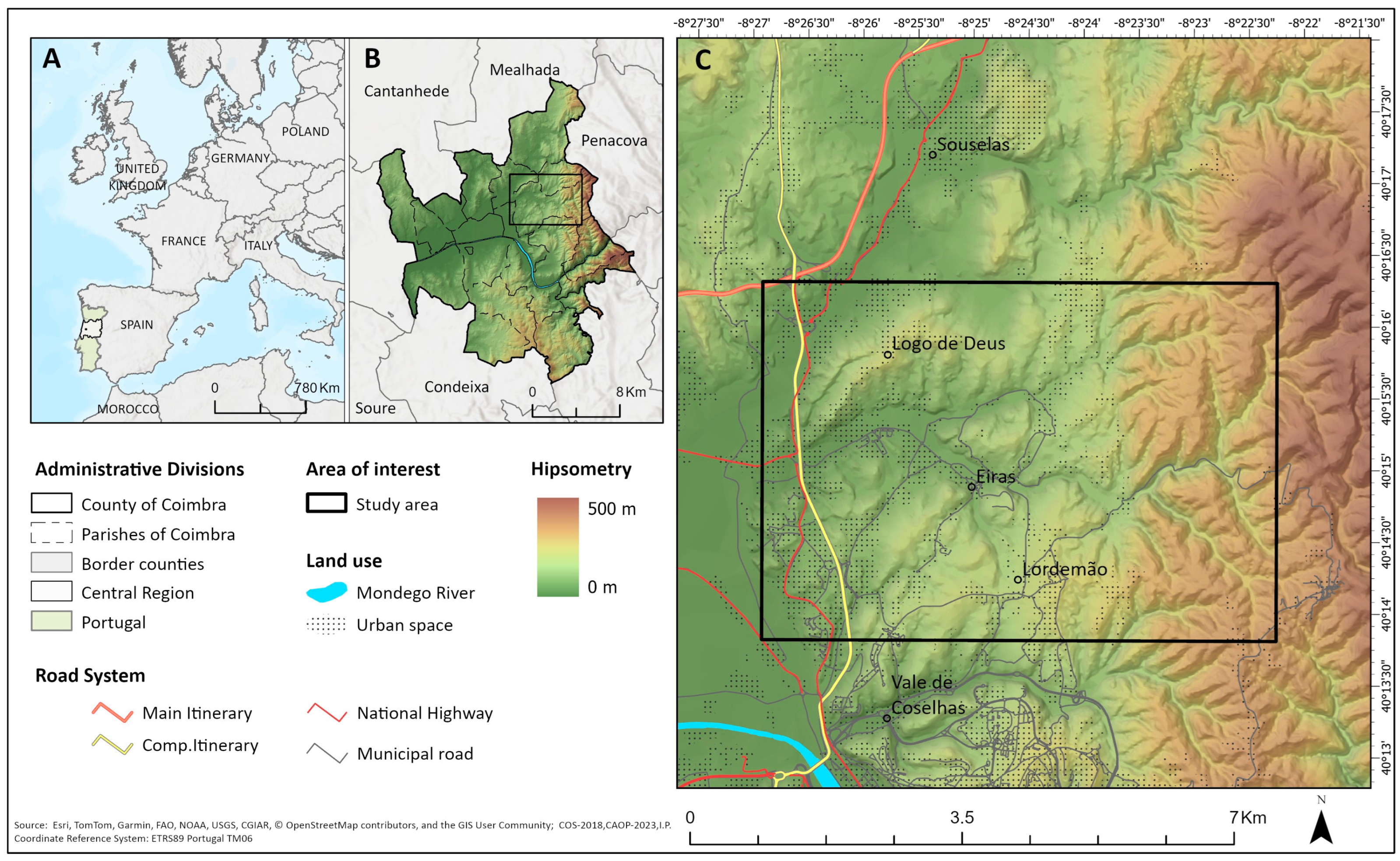 37]. The northeastern sector of Coimbra municipality, where the Eiras Valley is located (