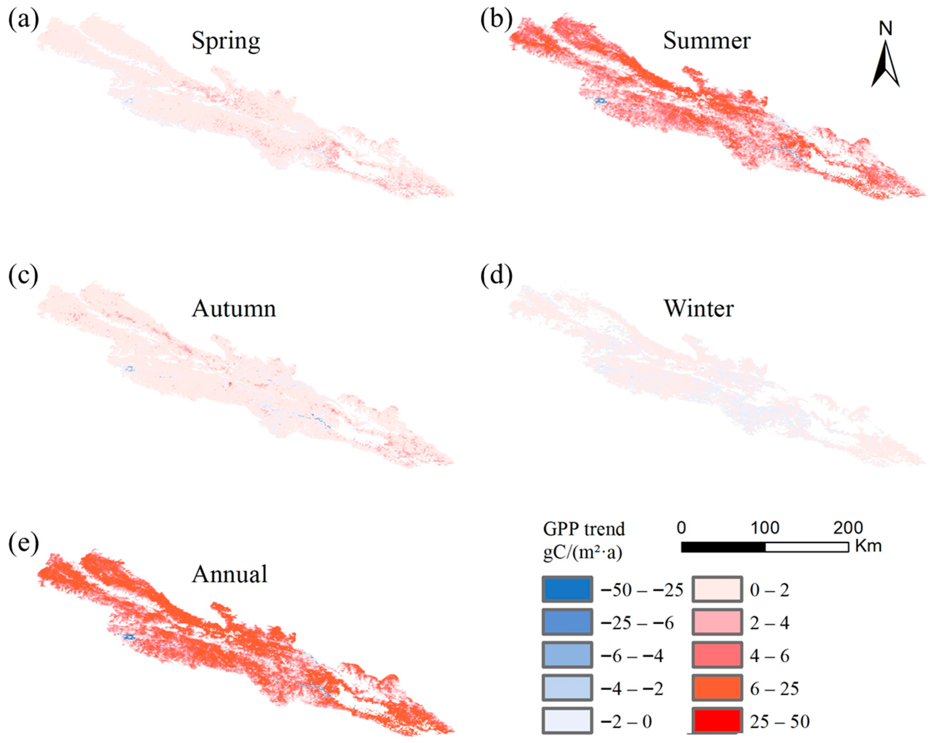 61], and our observed GPP increase is consistent with basin-wide studies showing the most pronounced increases occurring in summer [