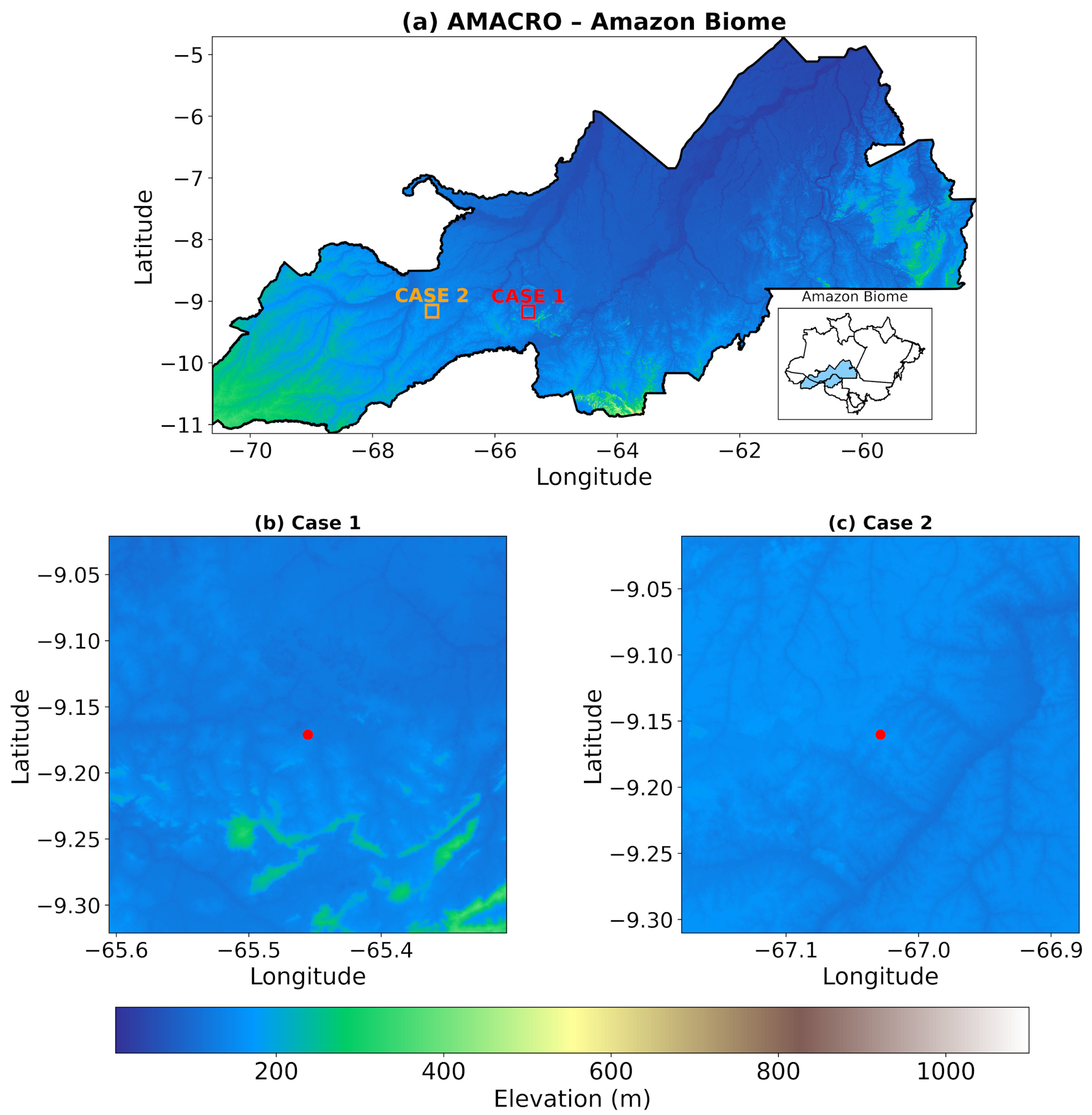 - Ahmad, S.; Holmes, T.; Lahmers, T.; Konapala, G.; Getirana, A.; Nie, W.; Libonati, R. Human footprint drives sustained evapotranspiration decline in Amazonia. Atmos. Chem. Phys. 2025, 25, 1–18. [Google Scholar] [CrossRef]