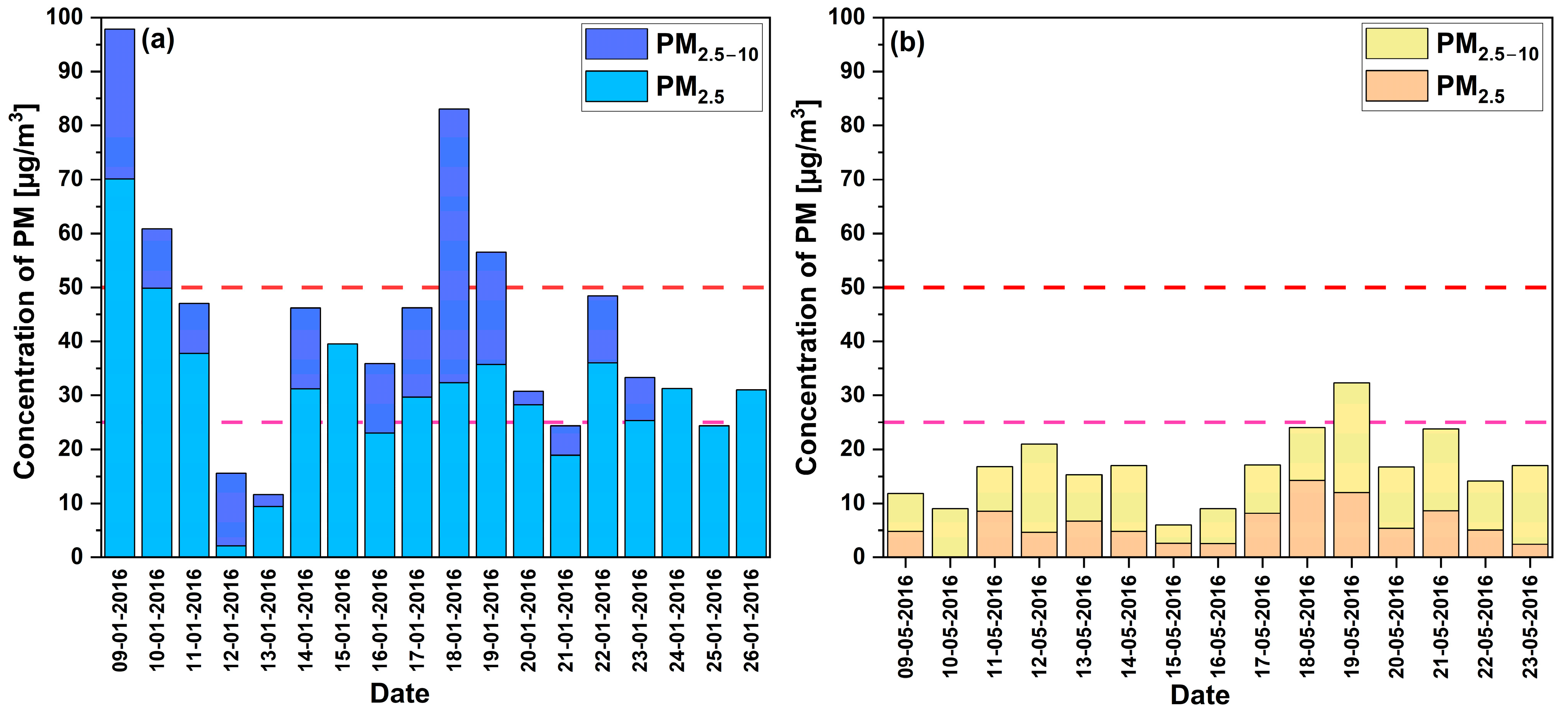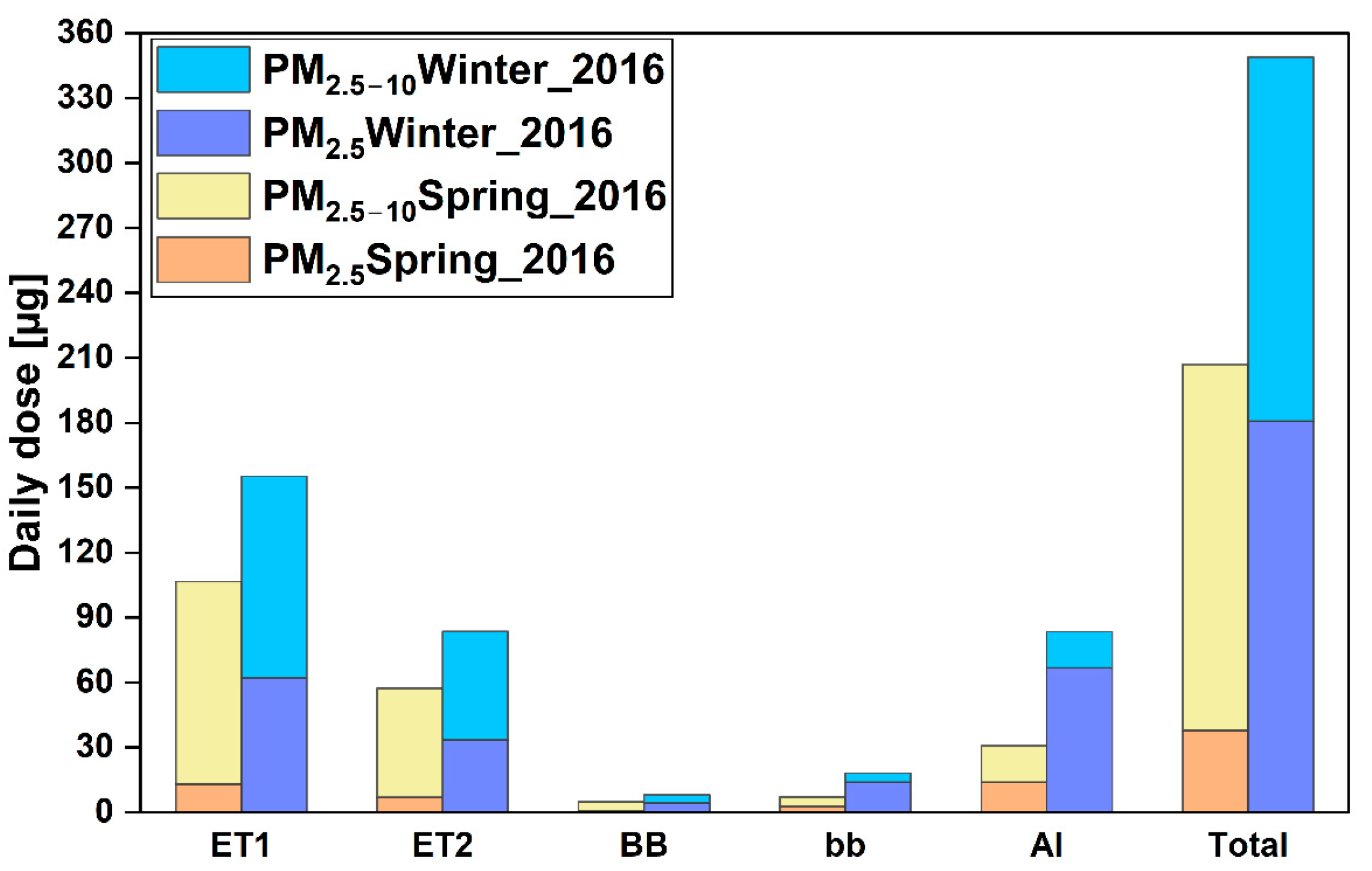 | PM2.5–10 | Seasonal | Wrocław | Winter 2016 vs. Spring 2016 | 1 |