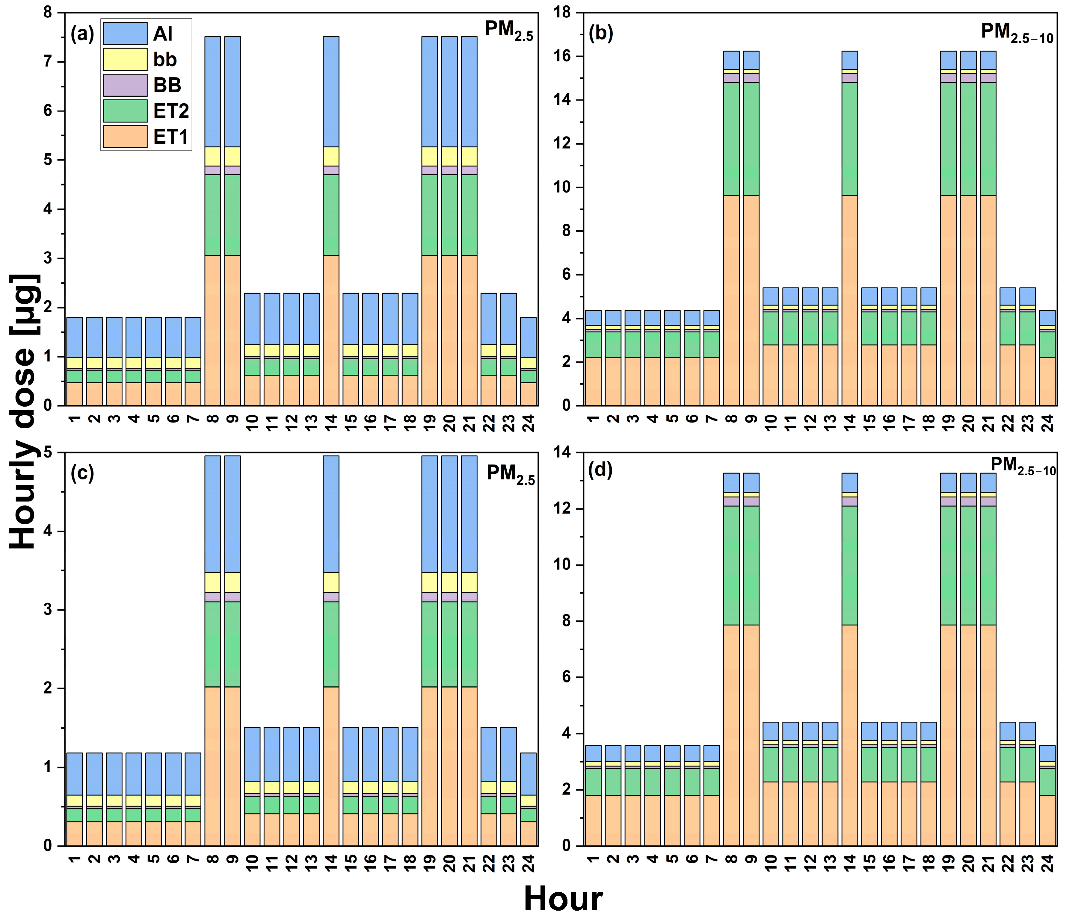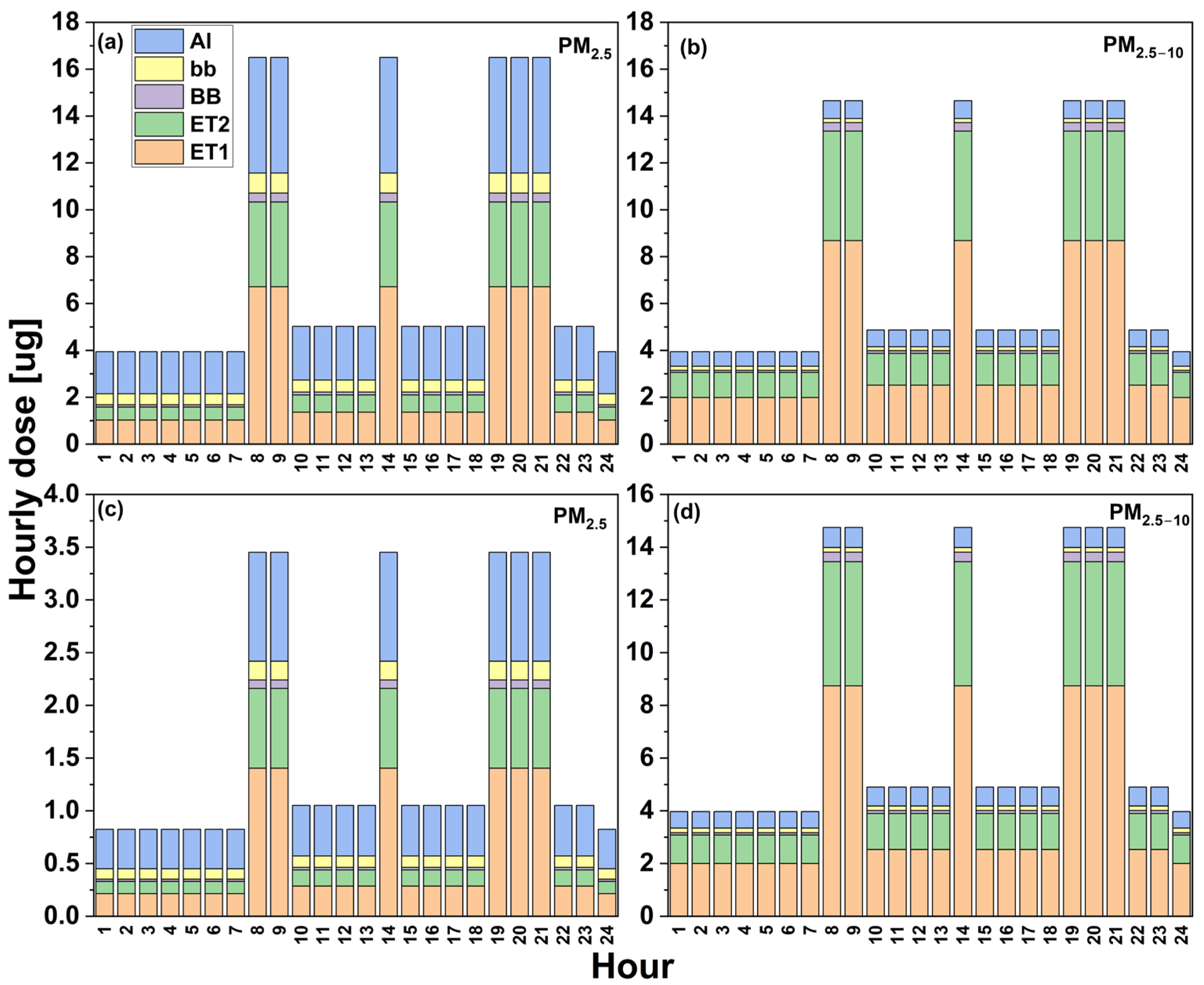 - Chalvatzaki, E.; Chatoutsidou, S.E.; Lazaridis, M. Regional deposited dose in the human respiratory tract using different particulate metrics. J. Environ. Expo. Assess. 2022, 1, 18. [Google Scholar] [CrossRef]
