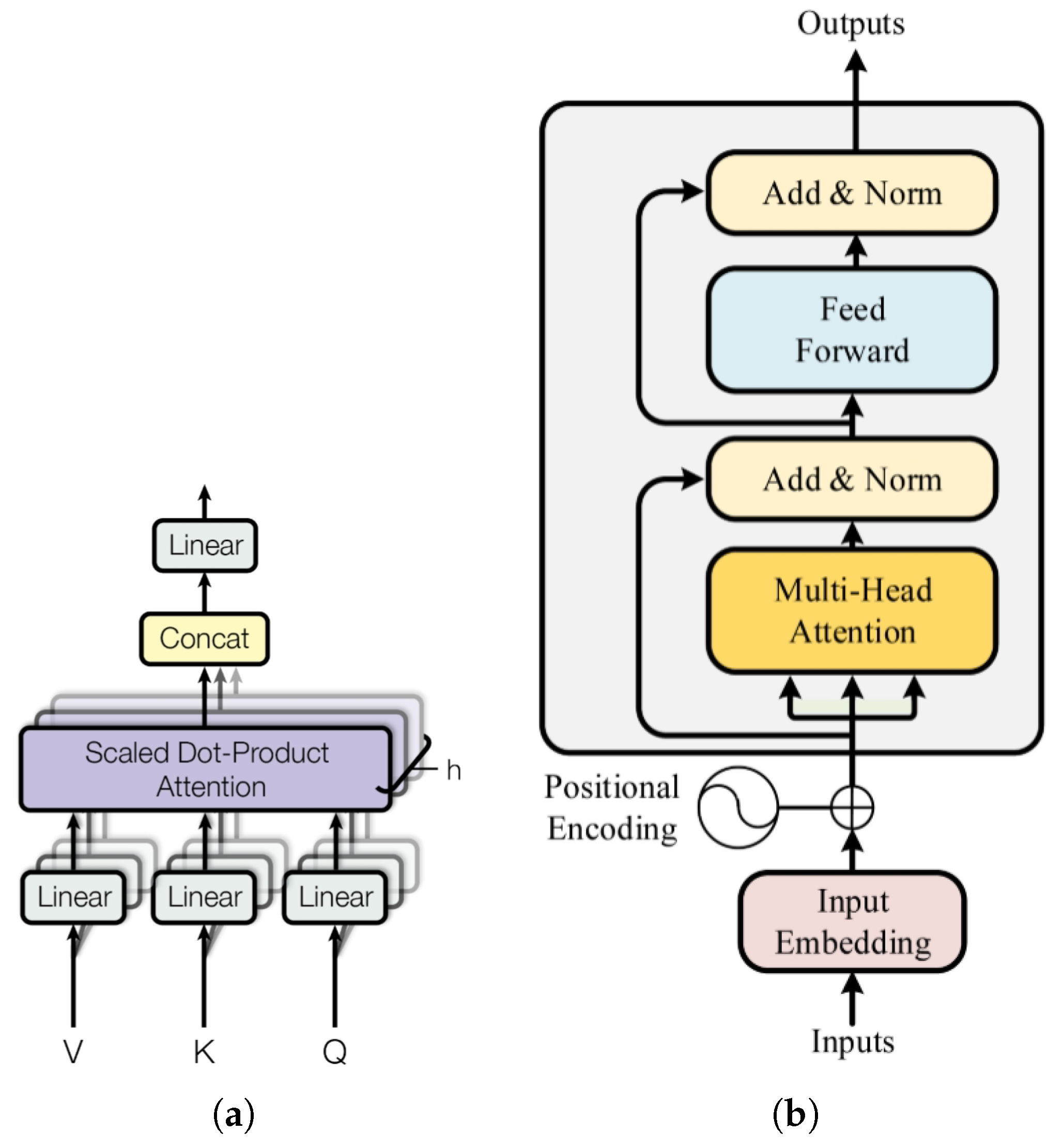 - Vaswani, A.; Shazeer, N.; Parmar, N.; Uszkoreit, J.; Jones, L.; Gomez, A.N.; Kaiser, Ł; Polosukhin, I. Attention is all you need. In Proceedings of the 31st International Conference on Neural Information Processing Systems, Long Beach, CA, USA, 4–9 December 2017; pp. 6000–6010. [Google Scholar] [CrossRef]