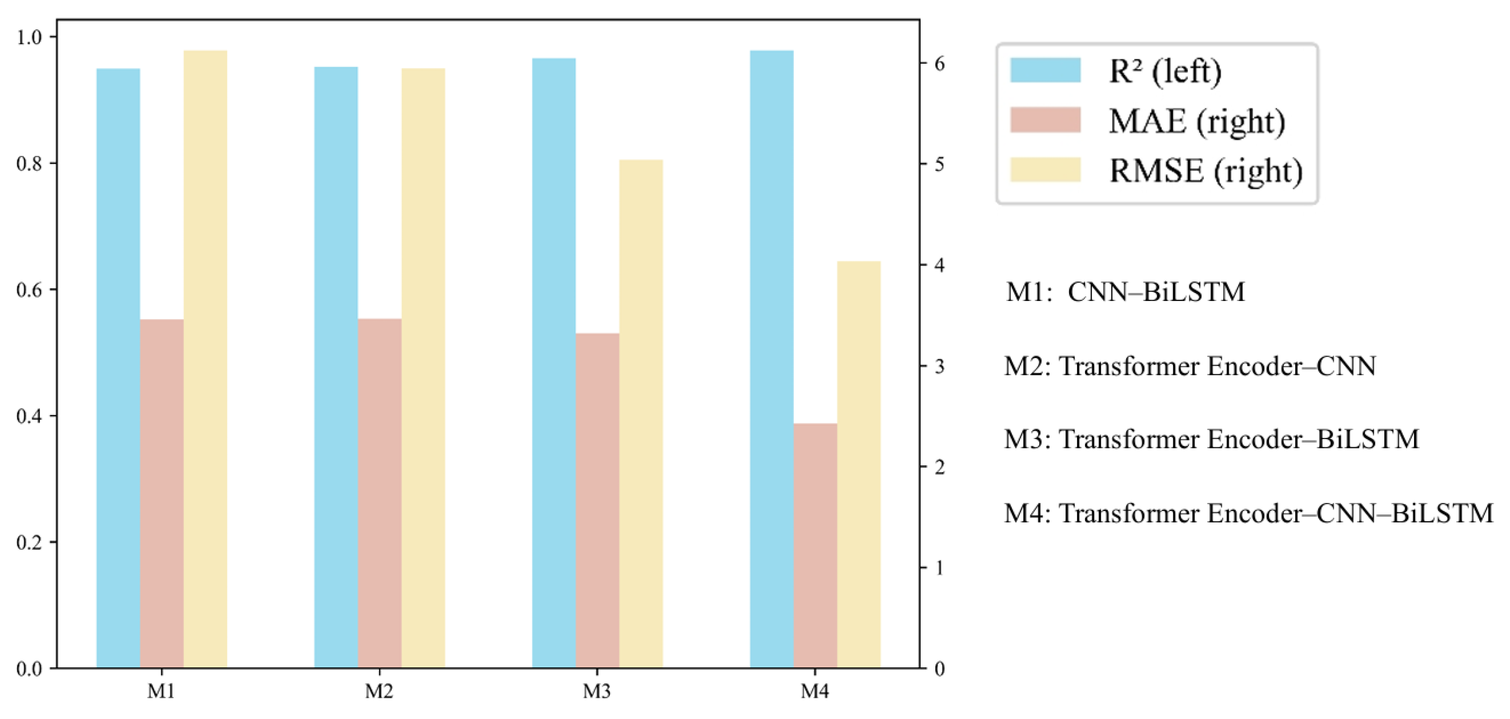 | Transformer Encoder–BiLSTM | 0.9658 | 3.3223 | 5.0417 |