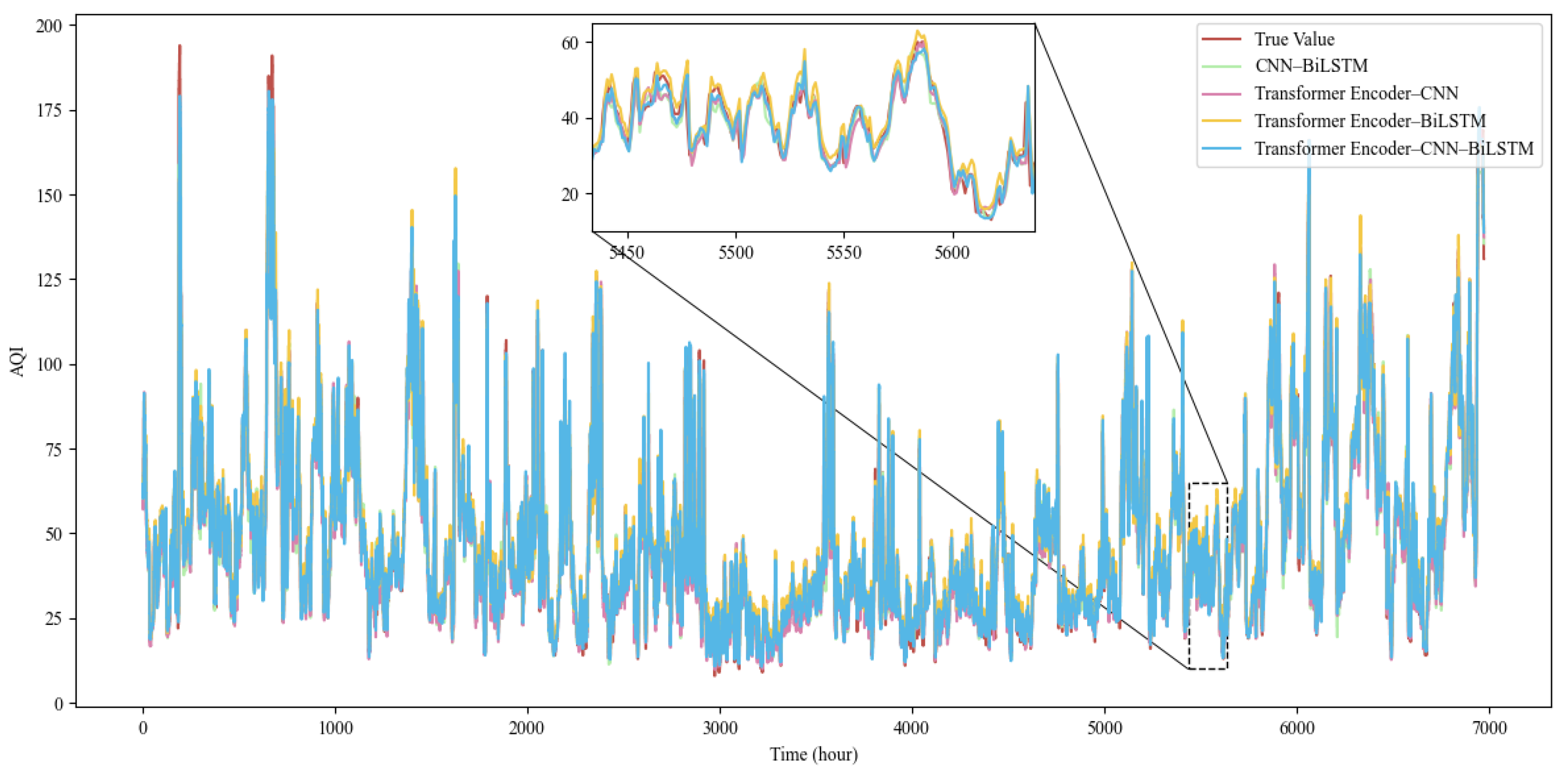 Air Quality Index Prediction Based on Transformer Encoder–CNN–BiLSTM Model