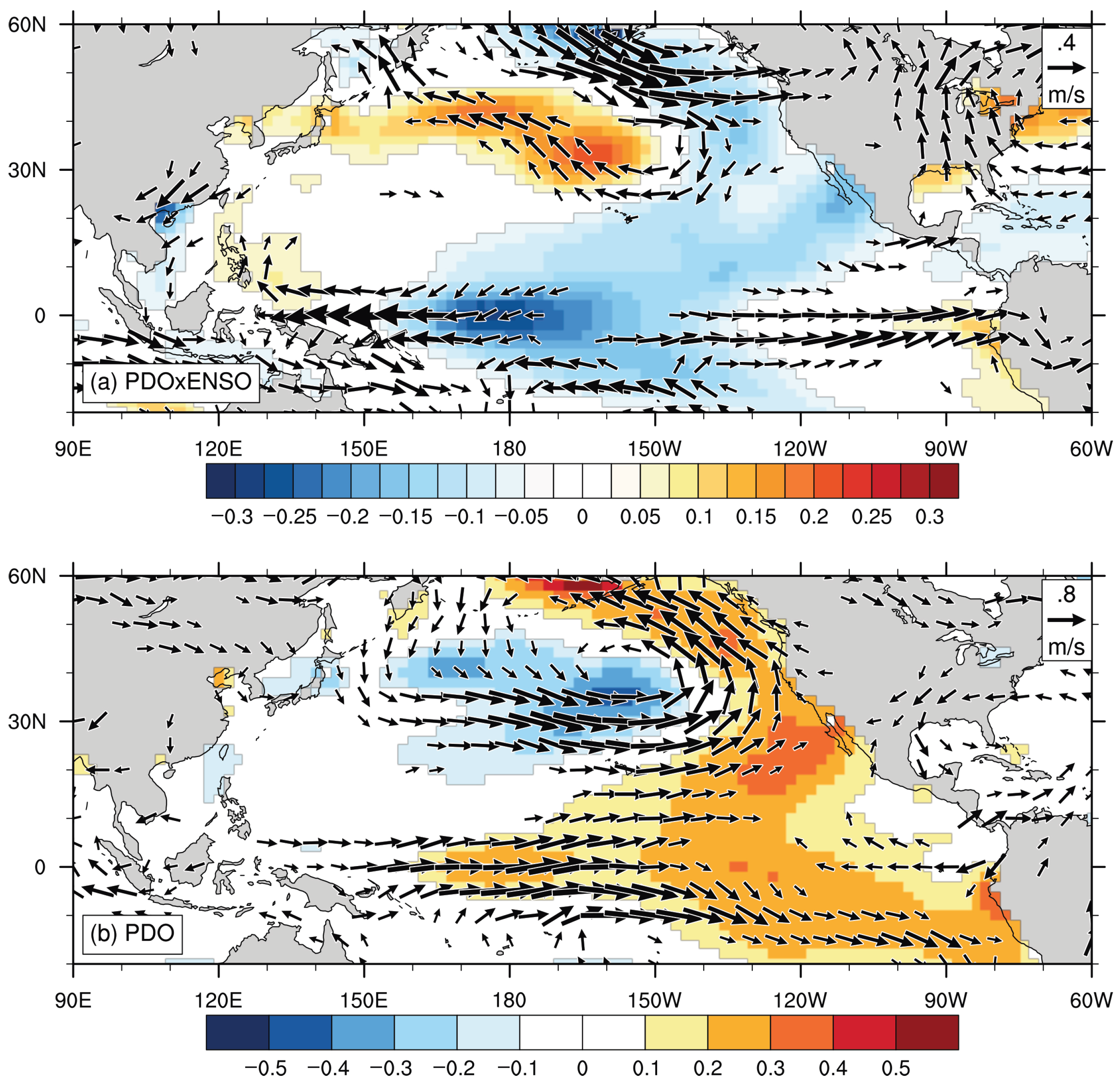 3.2. Role of the PDO–ENSO Nonlinear Interaction