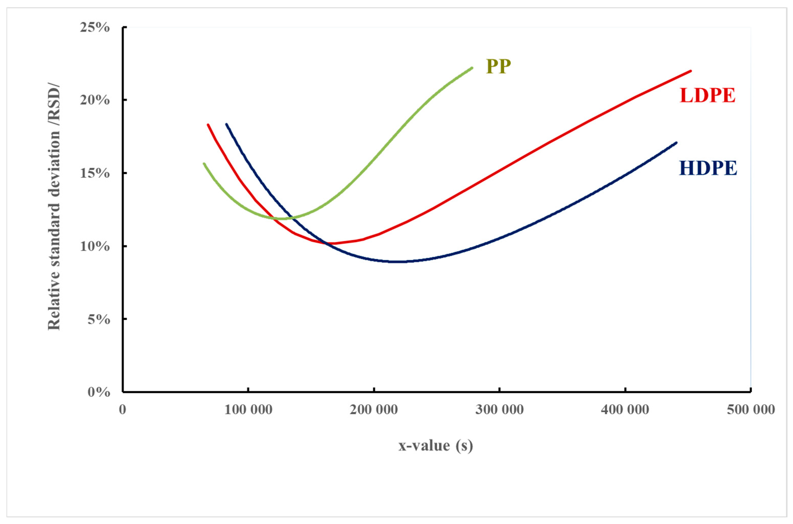 - HDPE: xopt = 2.14 × 105 s