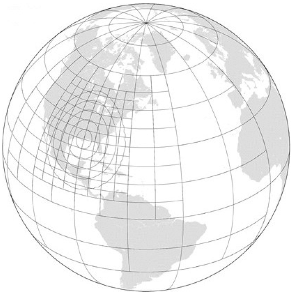 - Jablonowski, C.; Herzog, M.; Penner, J.E.; Oehmke, R.C.; Stout, Q.F.; van Leer, B.; Powell, K.G. Block-structured adaptive grids on the sphere: Advection experiments. Mon. Weather Rev. 2006, 134, 3691–3713. [Google Scholar]