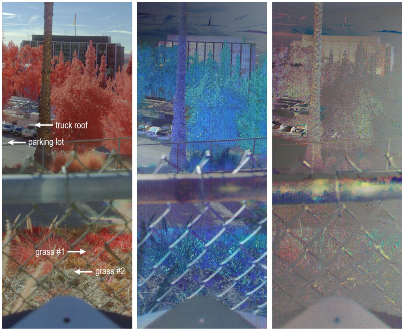 BRUF are spectrally neutral. The main exception is the truck roof, which shows some departure from spectral neutrality. This may not be surprising, given that the vehicle’s paint is likely to have some variation in its complex refractive index as a function of wavelength.