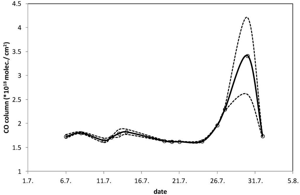 - CO column abundance increased by 100%. According to the FTS measurements, the peak column abundance on 30 July was 5.32 × 1018 molecules/cm2.