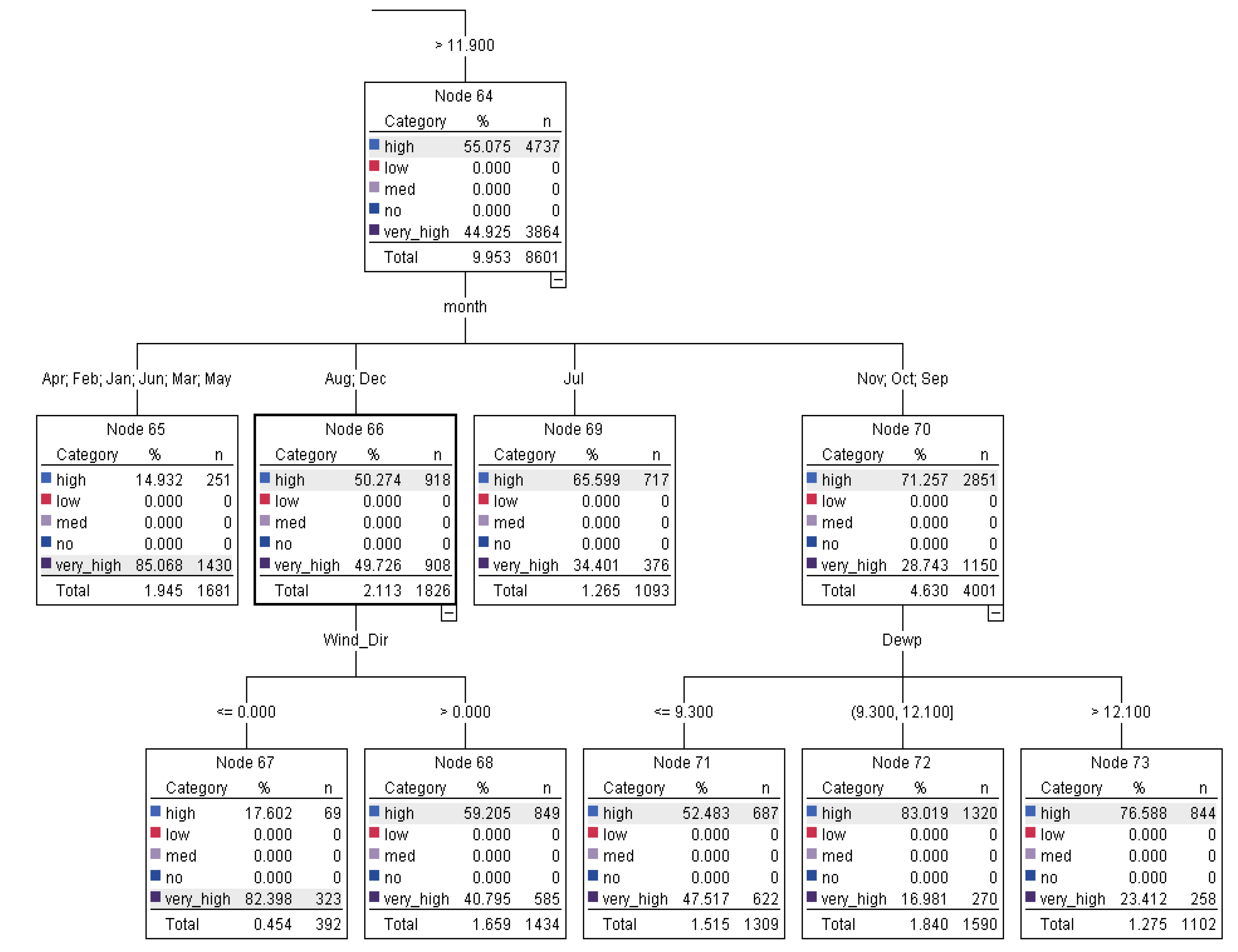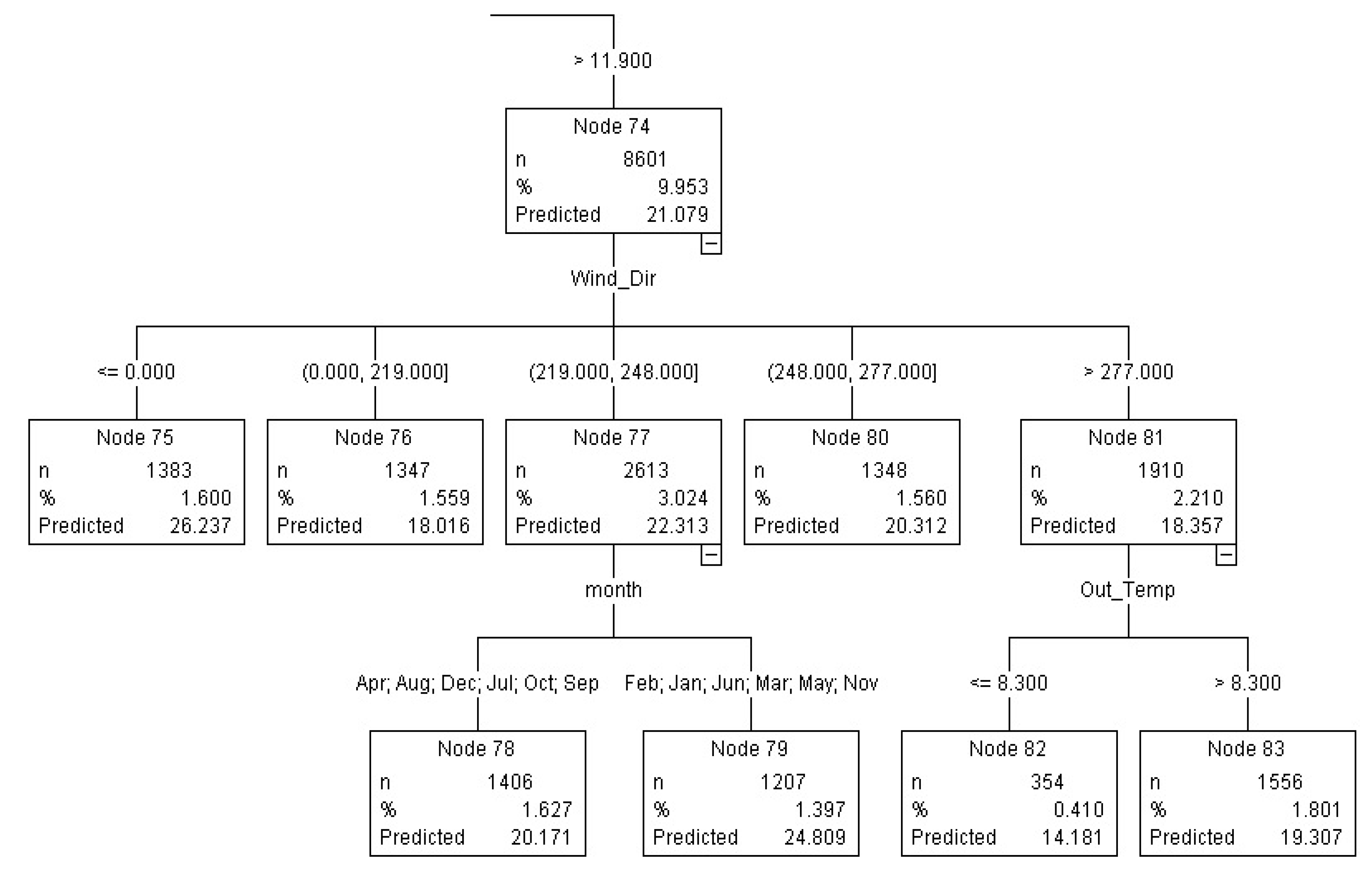 Figure 5. At the next level, wind speed >11.9 km/h in node 74 (