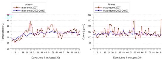- Hodnebrog, Ø.; Solberg, S.; Stordal, F.; Svendby, T.M.; Simpson, D.; Gauss, M.; Hilboll, A.; Pfister, G.G.; Turquety, S.; Richter, A.; et al. Impact of forest fires, biogenic emissions and high temperatures on the elevated eastern mediterranean ozone levels during the hot summer of 2007. Atmos. Chem. Phys. 2012, 12, 8727–8750. [Google Scholar] [CrossRef]