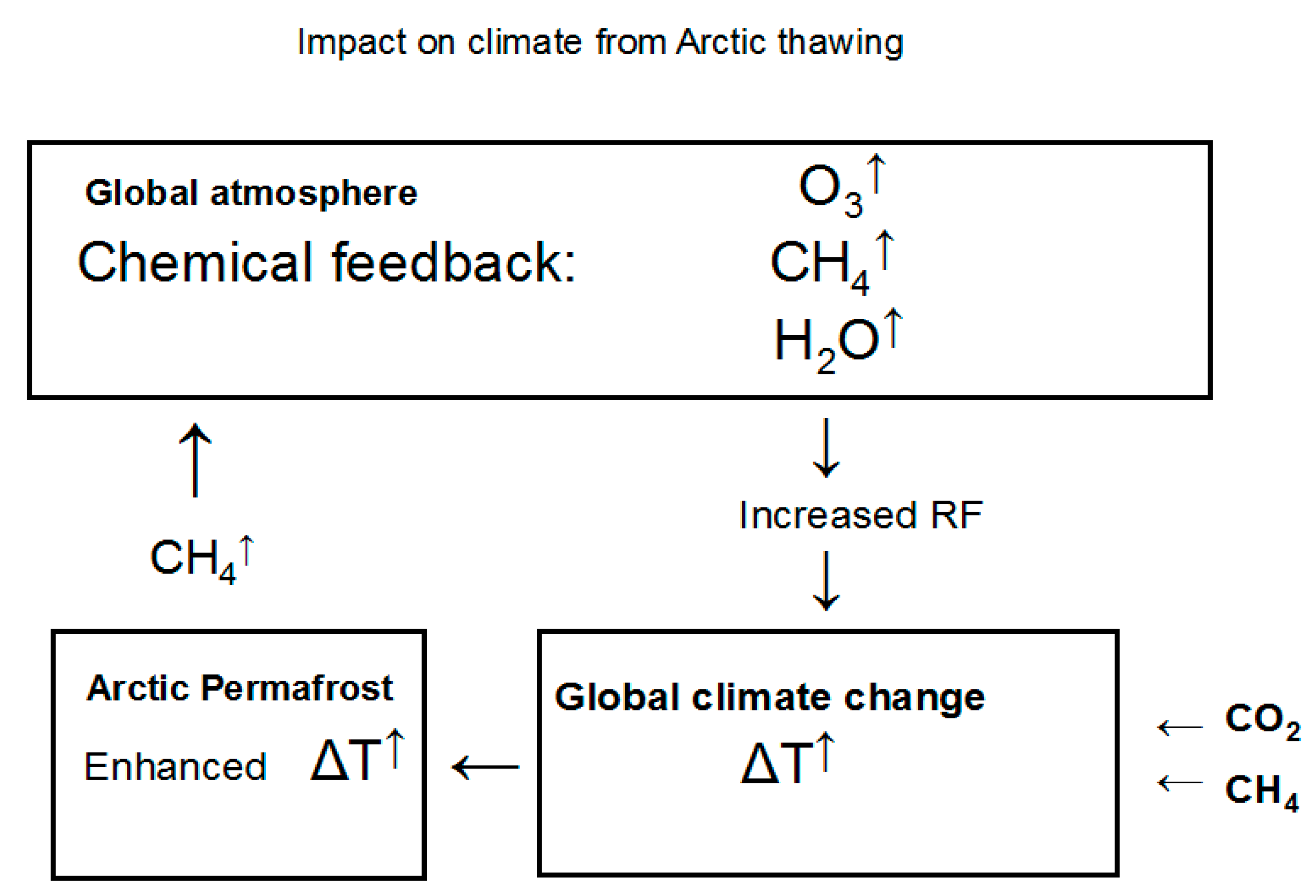 - Isaksen, I.S.A.; Gauss, M.; Myhre, G.; Walter Anthony, K.M.; Ruppel, C. Strong atmospheric chemistry feedback to climate warming from Arctic methane emissions. Glob. Biogeochem. Cycles 2011. [CrossRef]