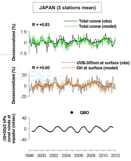 - Zerefos, C.S.; Tourpali, K.; Eleftheratos, K.; Kazadzis, S.; Meleti, C.; Feister, U.; Koskela, T.; Heikkilä, A. Evidence of a possible turning point in solar UV-B over Canada, Europe and Japan. Atmos. Chem. Phys. 2012, 12, 2469–2477. [Google Scholar] [CrossRef]