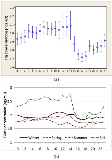 - Nair, U.S.; Wu, Y.L.; Walters, J.; Jansen, J.; Edgerton, E.S. Diurnal and seasonal variation of mercury species at coastal-suburban, urban, and rural sites in the southeastern United States. Atmos. Environ. 2012, 47, 499–508. [Google Scholar] [CrossRef]