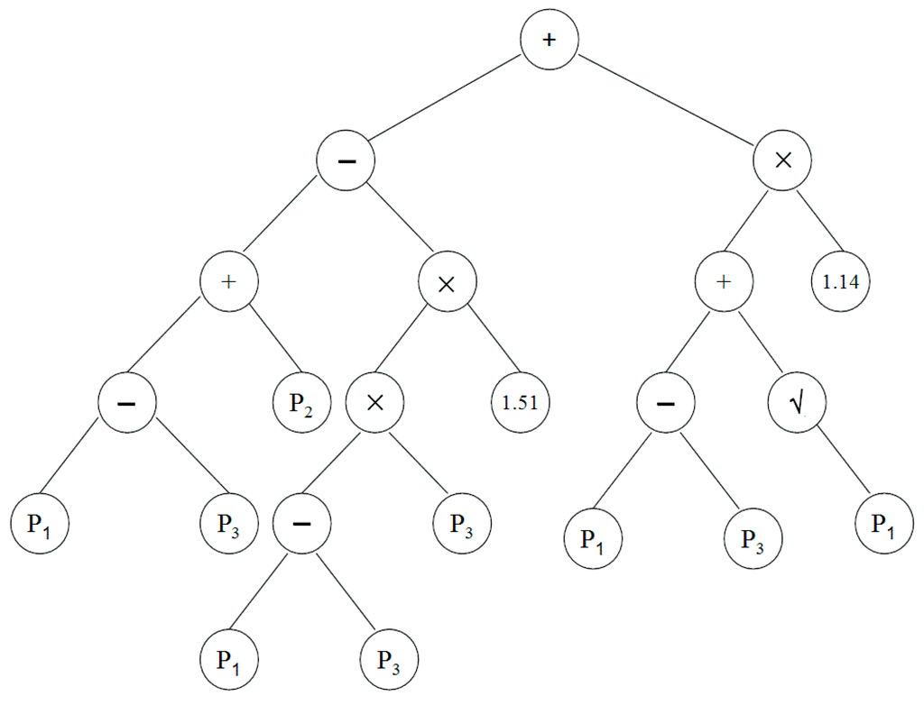 After evaluating the fitness, better programs are selected for the next generation. Genetic operators, namely mutation and crossover, are used to generate offspring form the existing individuals. Crossover between two trees is carried out by randomly choosing a branch in each tree and switching them. Mutation is performed by choosing a node and changing its value or meaning, i.e., the function symbol could become another function symbol or be deleted and the terminal value could be modified. The process is repeated until the termination conditions are met. The fittest program in the final generation is the prediction model of a particular extreme rainfall event [28,65].