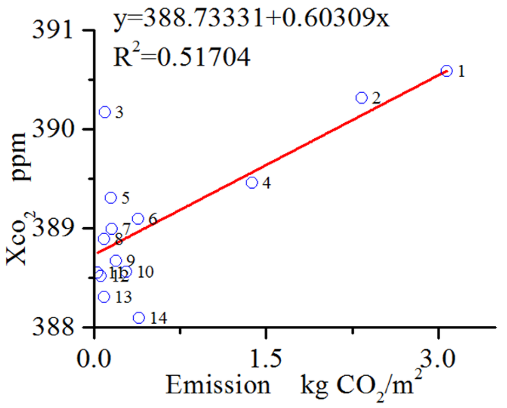 - Keppel-Aleks, G.; Wennberg, P.O.; O’Dell, C.W.; Wunch, D. Towards constraints on fossil fuel emissions from total column carbon dioxide. Atmos. Chem. Phys. 2013, 13, 4349–4357. [Google Scholar] [CrossRef]