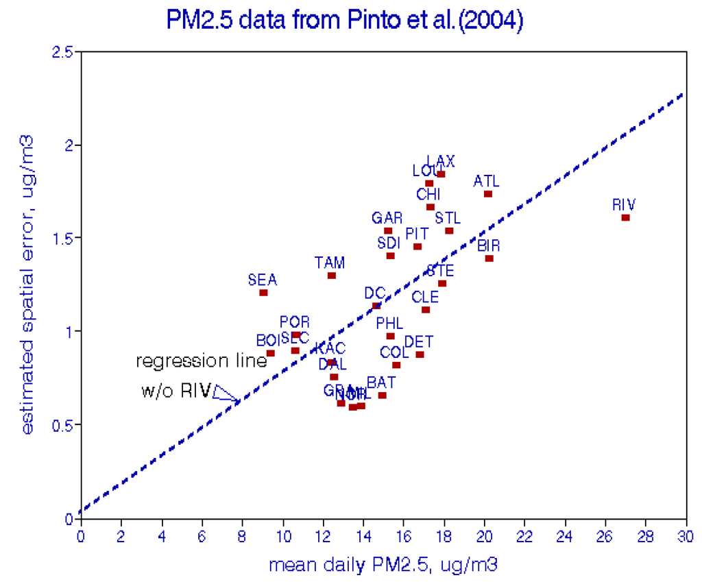 Estimated spatial PM2.5 uncertainties for 27 USA cities [16].