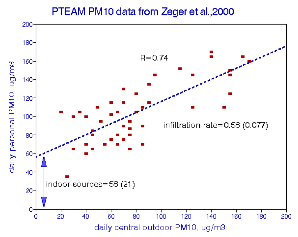 Indoor/outdoor PM10 relationships from Riverside, CA [23].