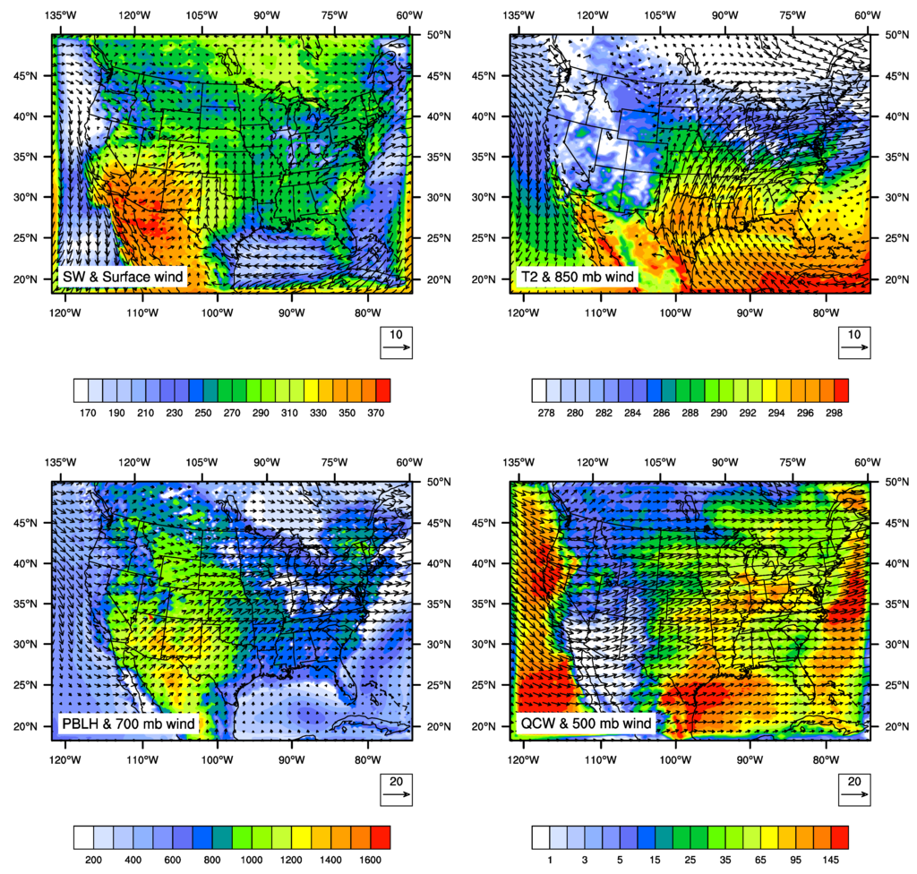 | SW | QCW | T2 | PBLH | Wind at 850 mb | Wind at 500 mb | |