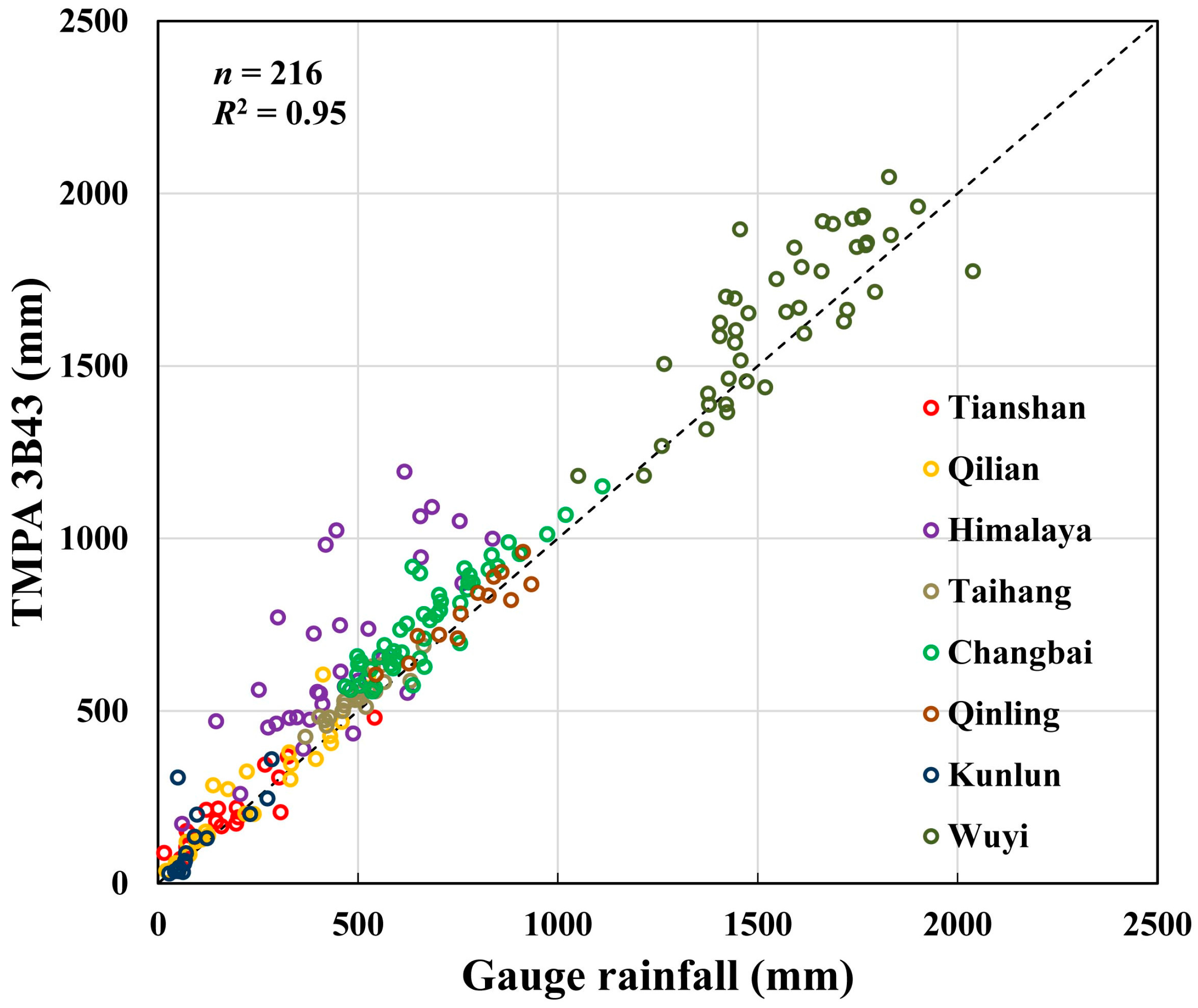| Region | Altitude of Gauges (m) | Gauge (mm) | 3B43 (mm) | Bias (%) | RMSD (mm) | |