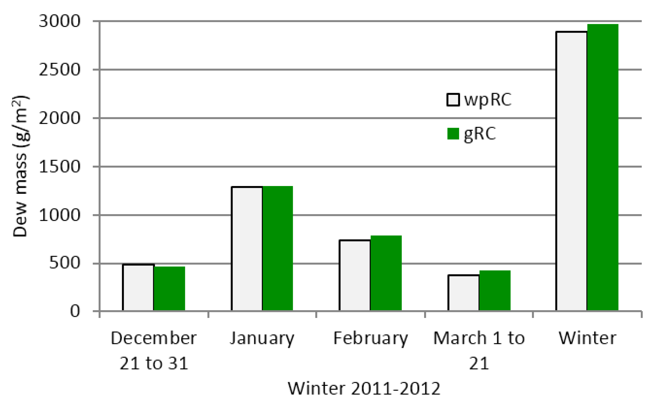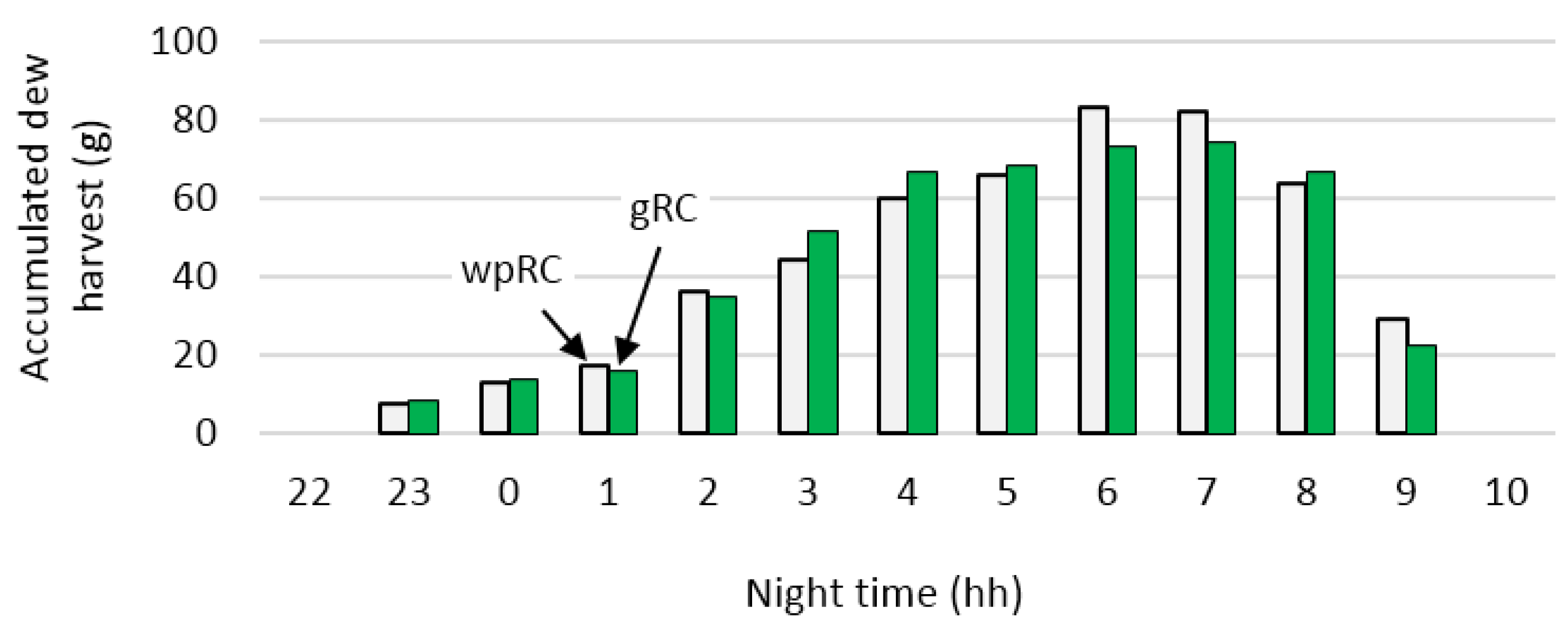 Comparison of the dew harvest in the gRC and wpRC.