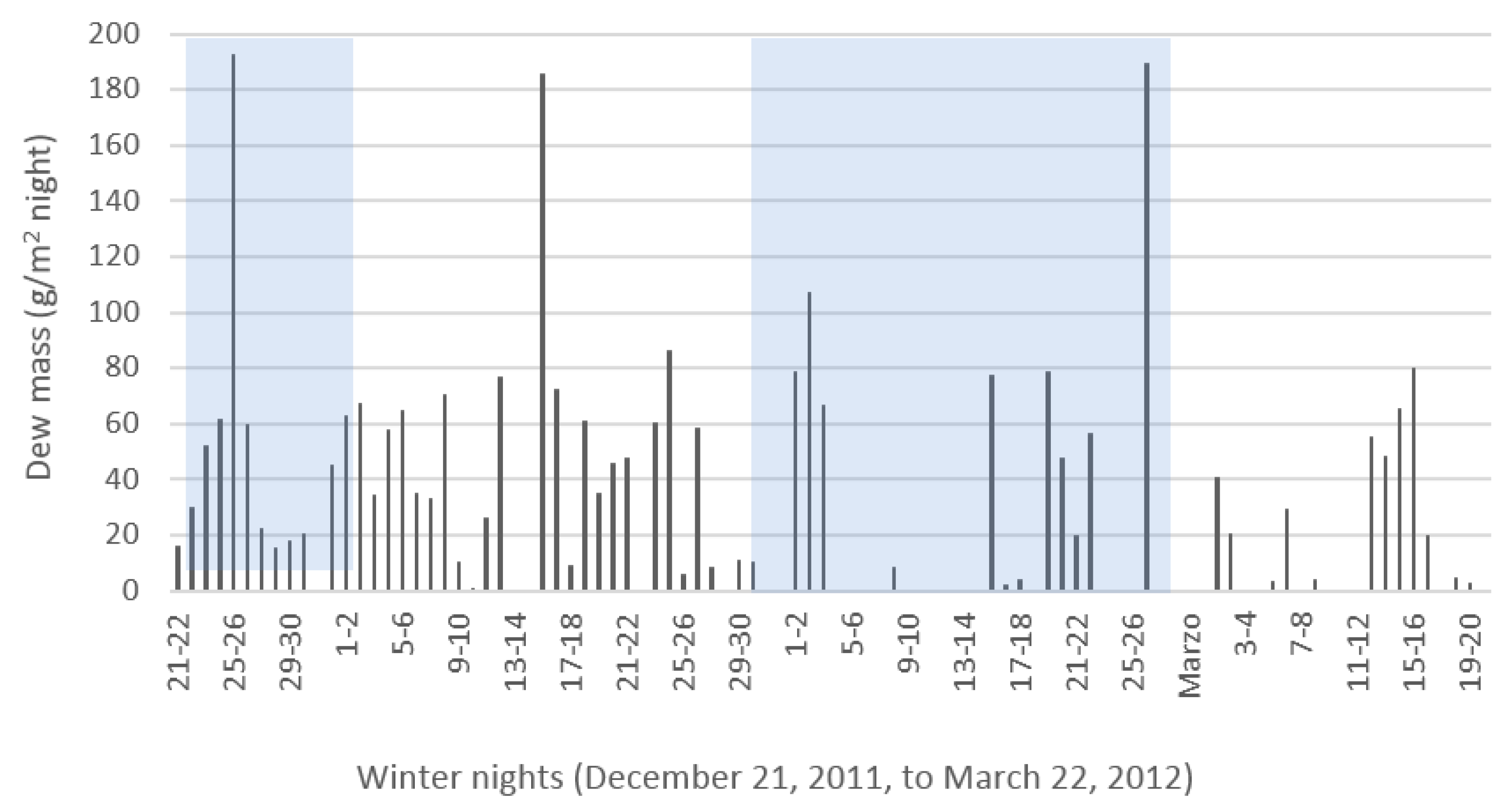 3.1.4. Nightly Dew Harvest throughout the Winter