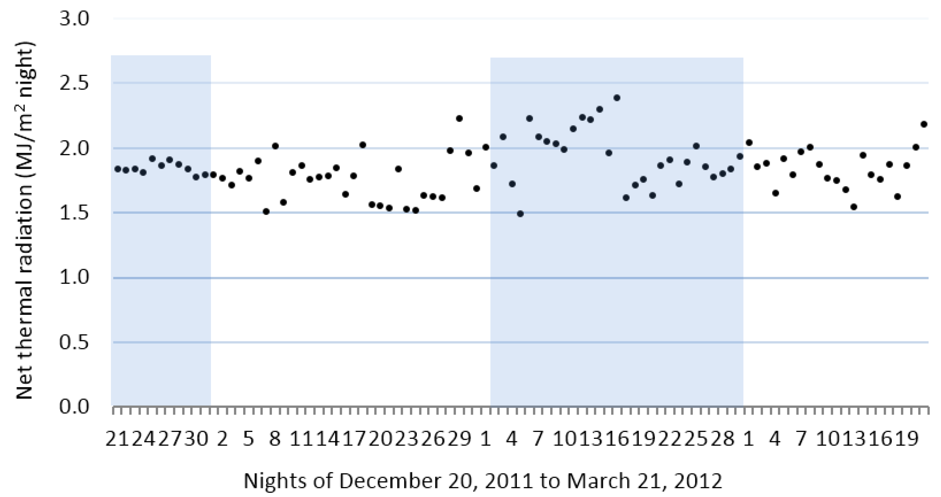 3.1.3. Nightly Radiative Cooling throughout Winter