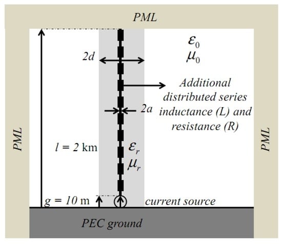 In this case, the electromagnetic return stroke channel is modeled as a thin wire surrounded by air (d = 0 or εr = 1, μr = 1) loaded by distributed series resistance (R) and/or inductance (L).