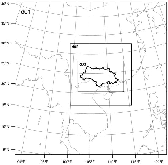 Map of domain sizes of the d01–d03 simulations.