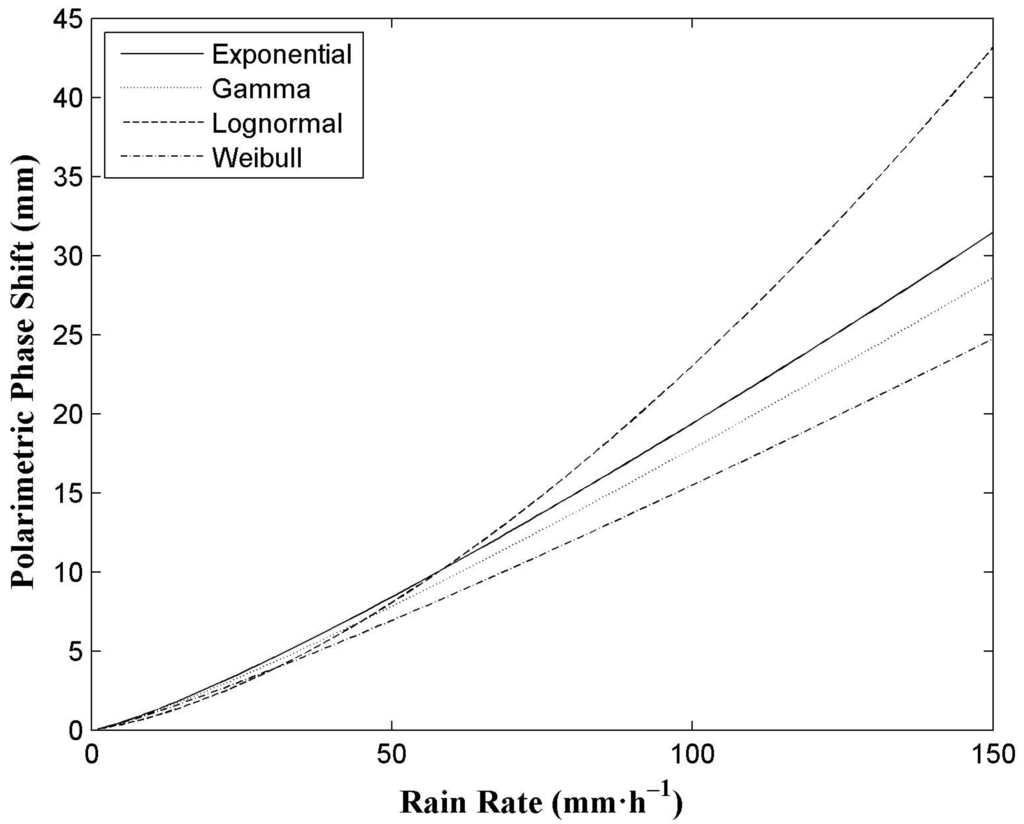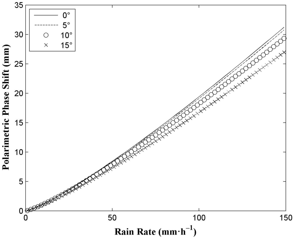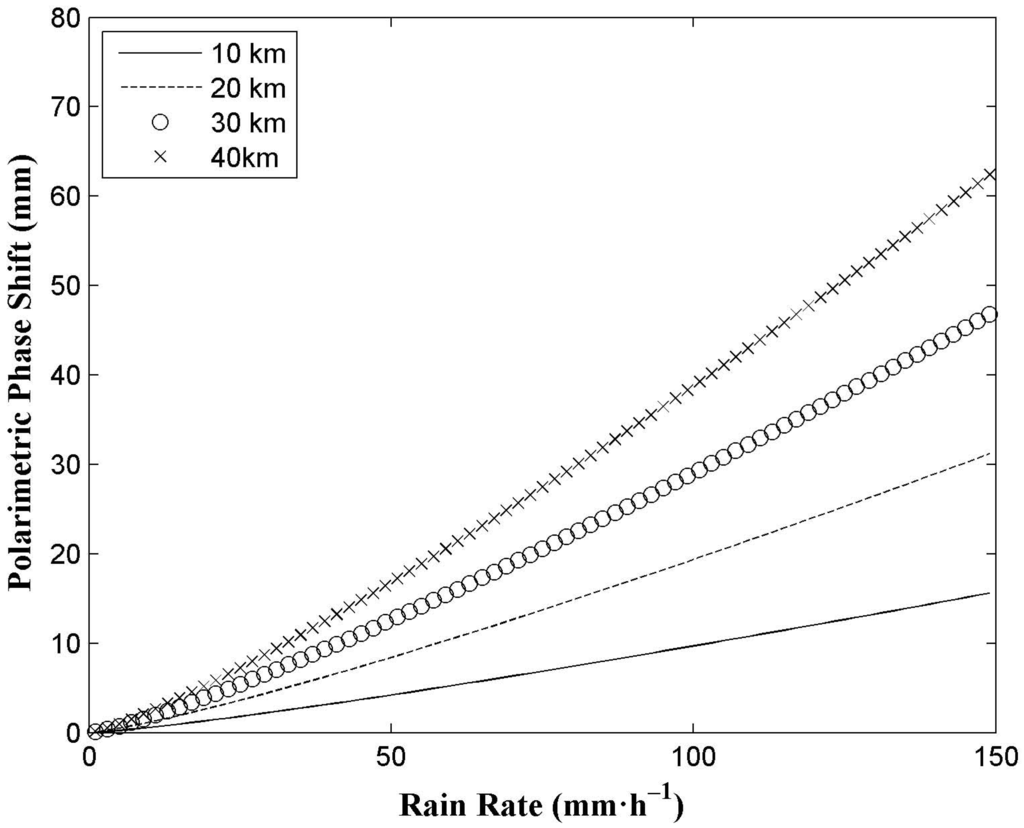 From the above methods, the polarimetric phase shift depends mainly on the specific differential phase (KDP), which has several advantages. As the GNSS signals propagate through the rain-filled medium, KDP is independent of receiver and transmitter calibrations, not affected by attenuation and not biased by ground clutter cancellers [49].