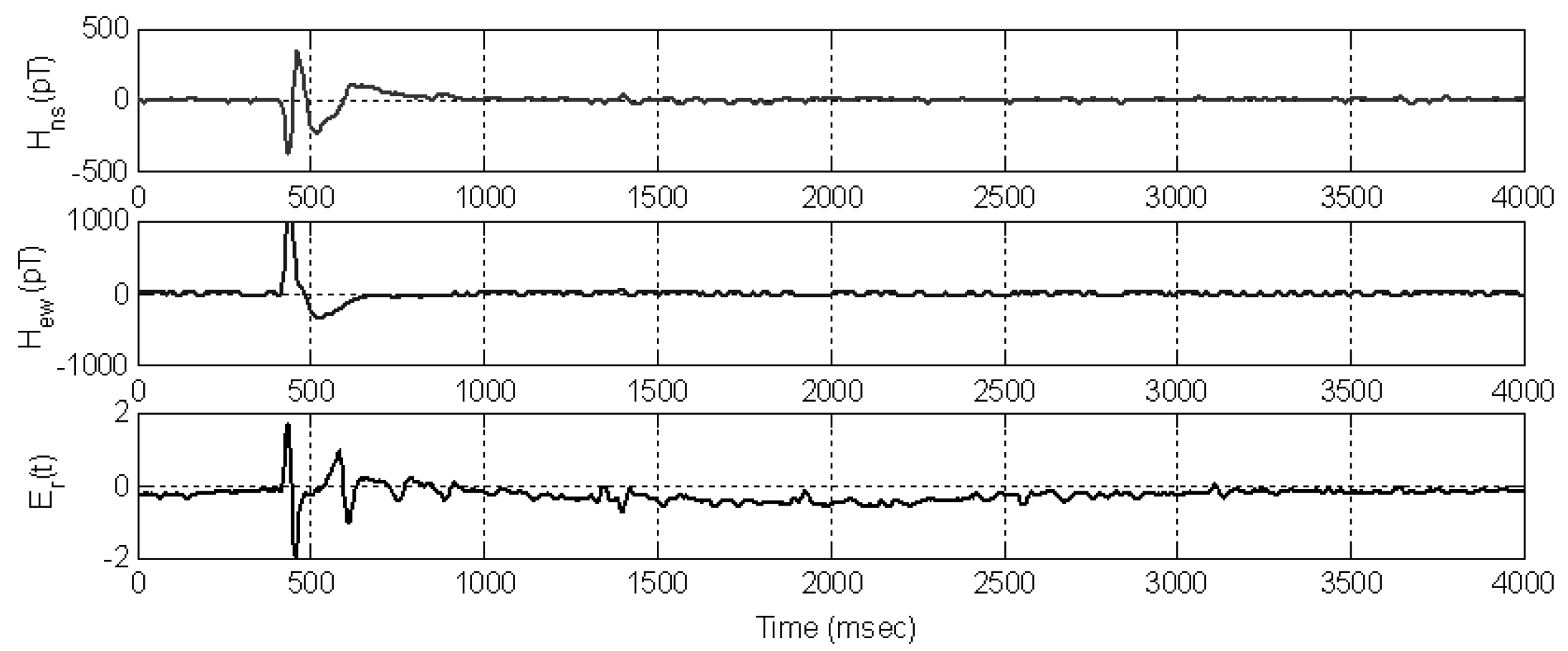Example of ELF transient recorded at Mitzpe Ramon (32°N, 34°E) station, Israel.