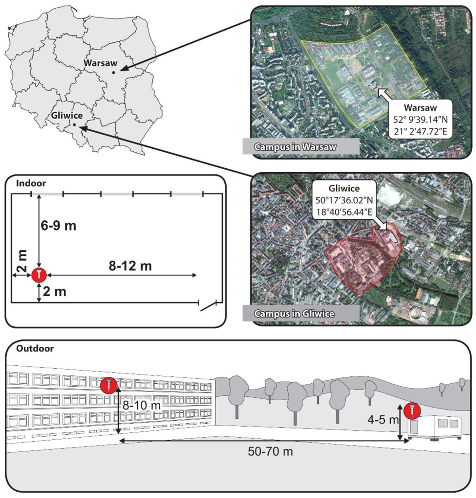 Measurement points in Warsaw and Gliwice (Poland).