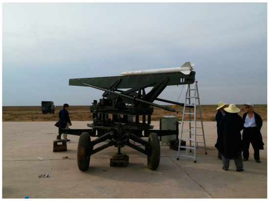 On 3 July 2015, a flight experiment on the rocket sonde installed with new satellite navigation system was conducted in Alxa Left Banner, China. As a director in charge of the data processing, the author had first-hand experience of the experiment and thus gained access to relevant data. Figure 1 shows the state of the rocket before launching.