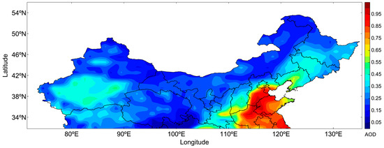 Annual mean AOD at 550 nm over North China for the period 2001–2016.