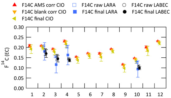 3.2. Analysis of Radiocarbon in EC: Results of an Inter-Comparison Study